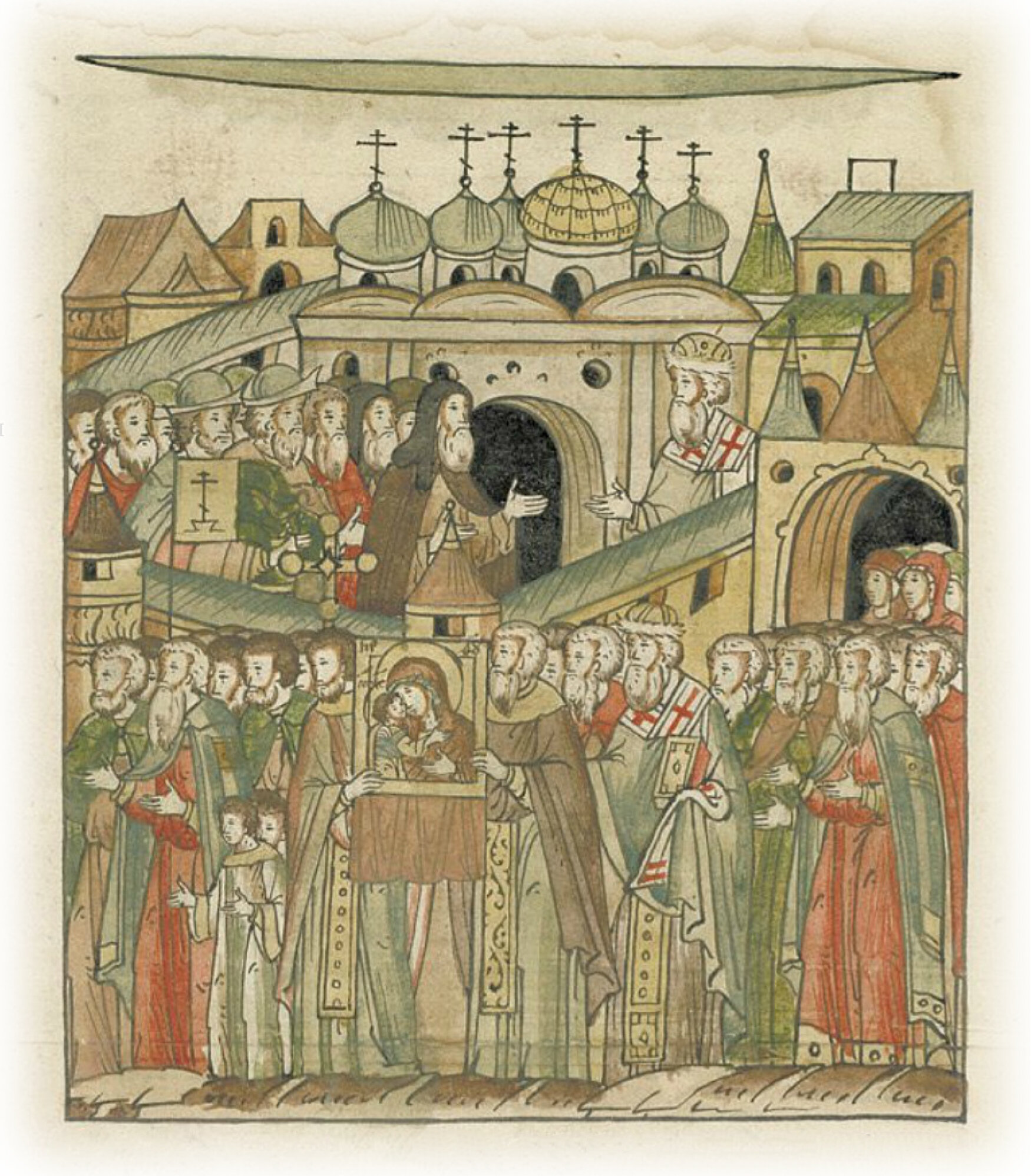 И боголюбивый архиепископ Макарий созвал архимандритов и игуменов, священников и сановников города и весь народ, и, обходя с крестами вокруг города, молебен совершали, прося у Господа Бога великой милости и благорастворенного воздуха и дождя.