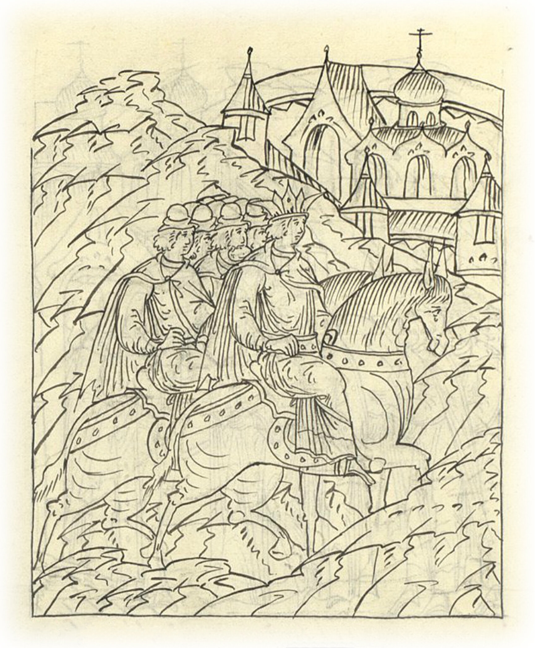 Царь Иван Васильевич едет в Сергиев монастырь из Москвы.