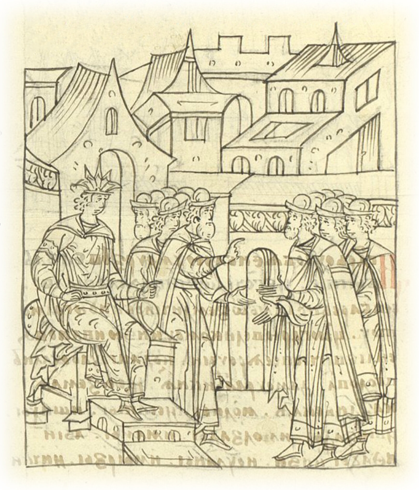 Ругодивские посадники Яким и Захар приезжают в Москву. Воеводы царя Ивана Васильевича Алексей Адашев и Иван Михайлов сообщают им, что государь пожалует их, если сдадут его воеводам помимо Ругодива Вышгород.
