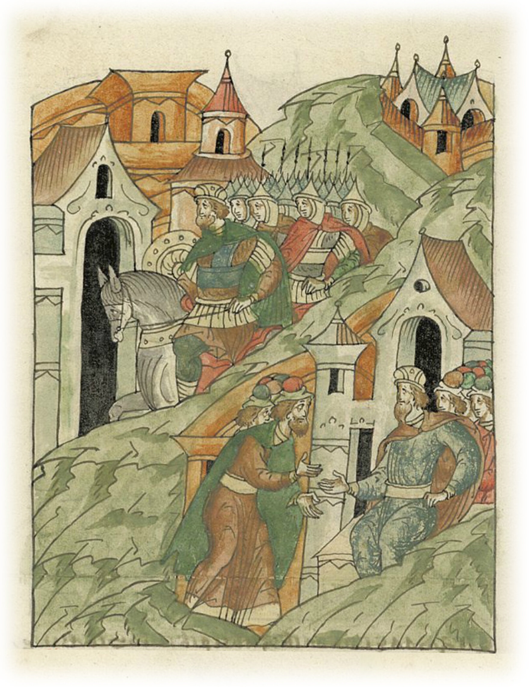 Ругодивские посадники Яким и Захар приезжают в Москву. Воеводы царя Ивана Васильевича Алексей Адашев и Иван Михайлов сообщают им, что государь пожалует их, если сдадут его воеводам помимо Ругодива Вышгород.