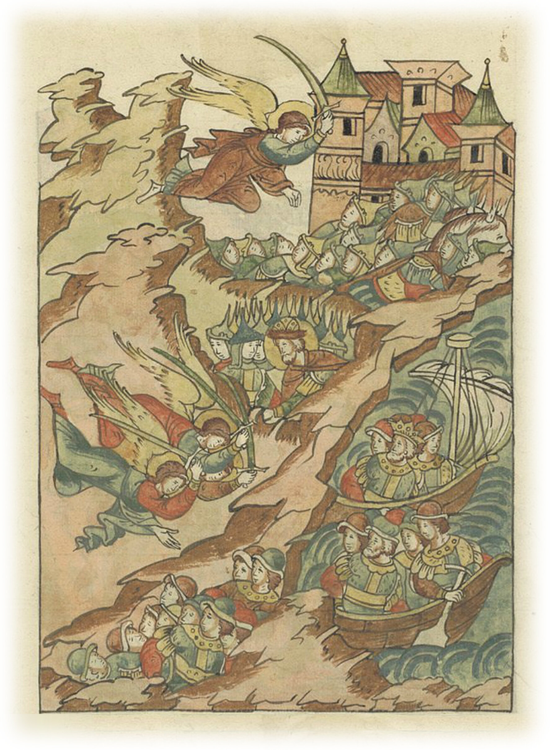 Случилось в то время чудо дивное, как в древности при Иезекии царе, когда пришел Сенахирим, царь Ассирийский, на Иерусалим, чтобы пленить святой город, и внезапно явился ангел Господень, и перебил из войска ассирийского 185.000. И когда встали утром, нашли только трупы мертвых. Так и после победы великого князя Александра Ярославича, когда победил он короля, то на другой стороне реки Ижеры, где и не проходили полки великого князя Александра, оказалось многое множество (врагов), избитых ангелами Божьими: там нашли много лежащих трупов мертвых, остальные же бежали посрамленные,