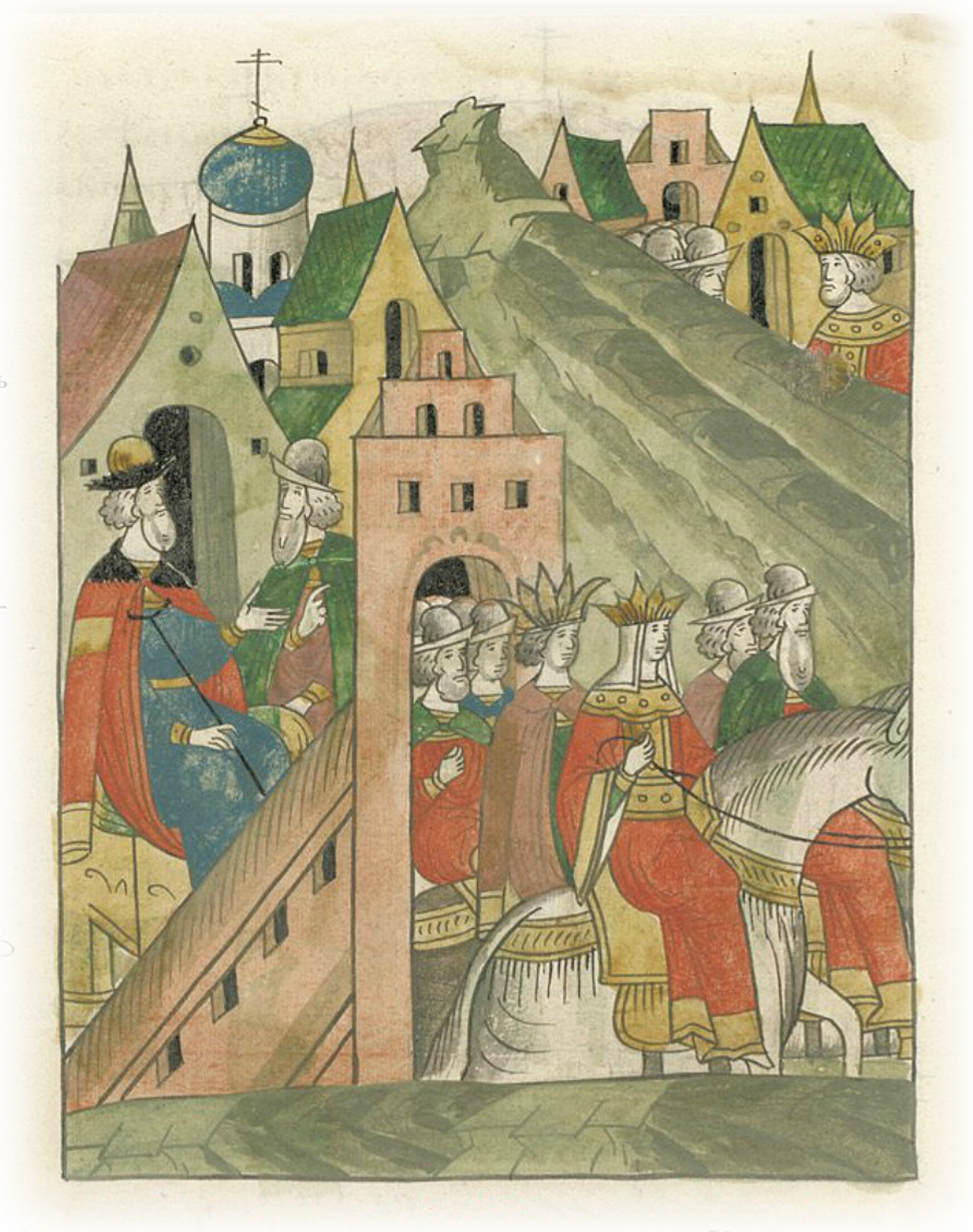 Ругодивские посадники Яким и Захар приезжают в Москву. Воеводы царя Ивана Васильевича Алексей Адашев и Иван Михайлов сообщают им, что государь пожалует их, если сдадут его воеводам помимо Ругодива Вышгород.