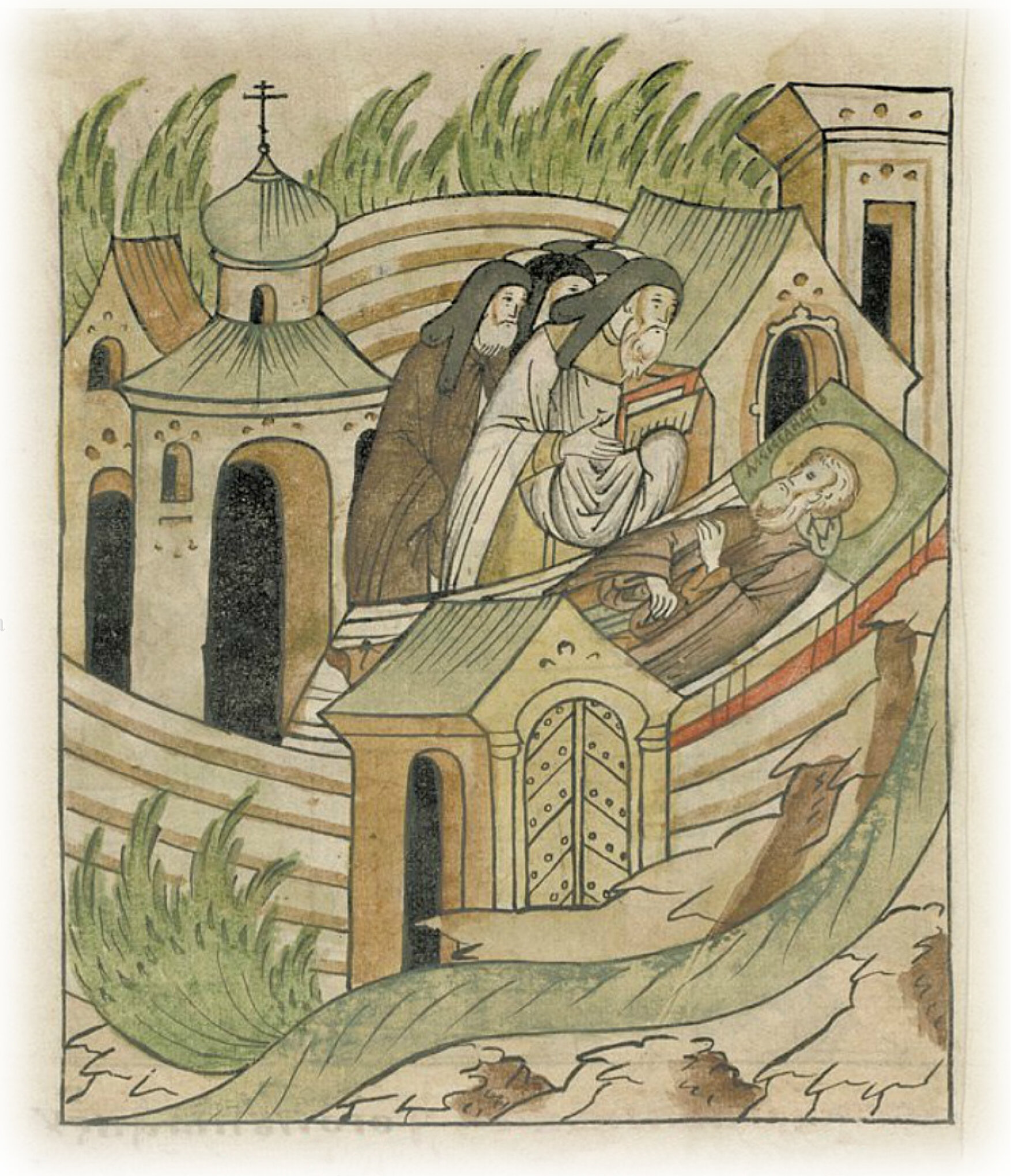 О преставлении преподобного Александра Свирского. Тем же летом в августе в 30 день скончался игумен Александр, который создал честную обитель на реке Свирь, и, в ней трудолюбиво пожив, отошел к Господу в обители, которая ныне зовется по его благословению Александрова пустынь.