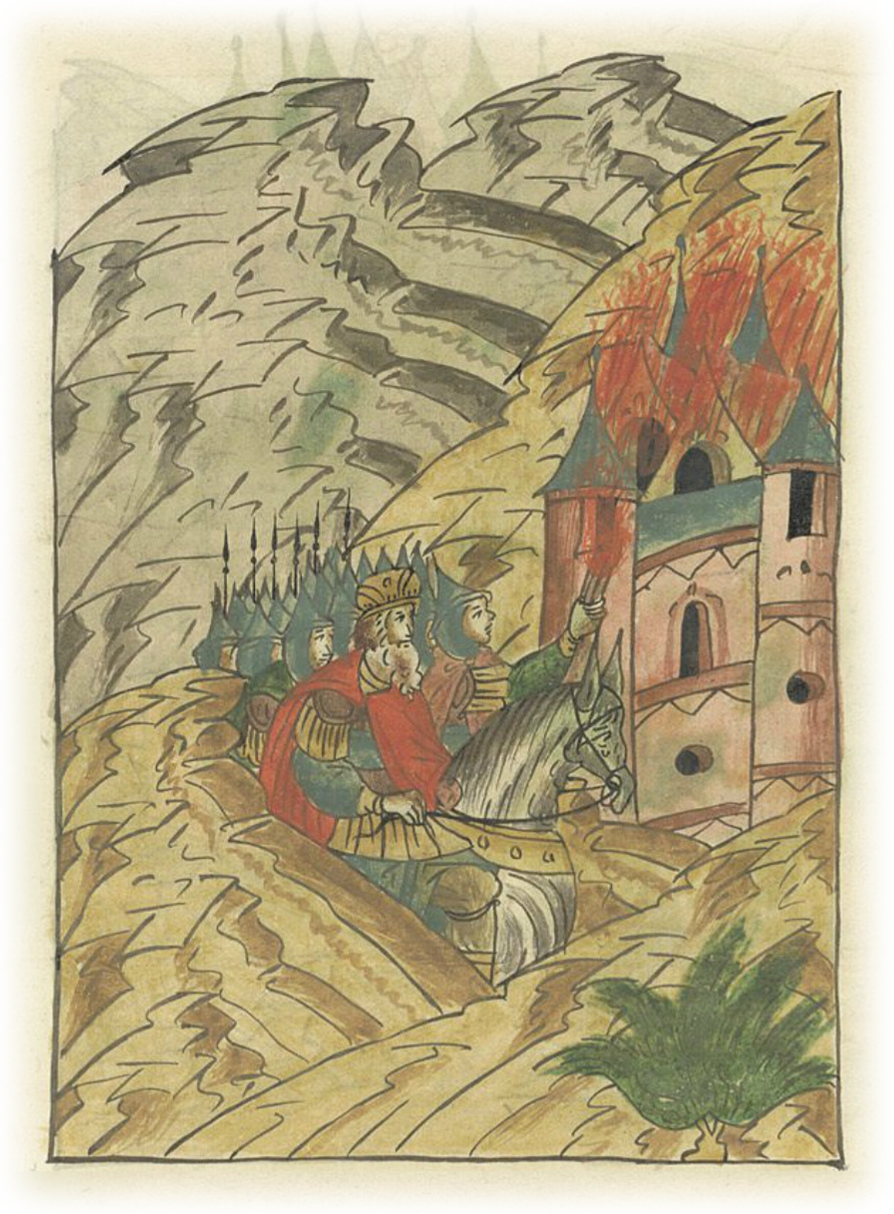 Воеводы царя Ивана Васильевича, разделившись, идут в погоню за царем Емгурчеем.