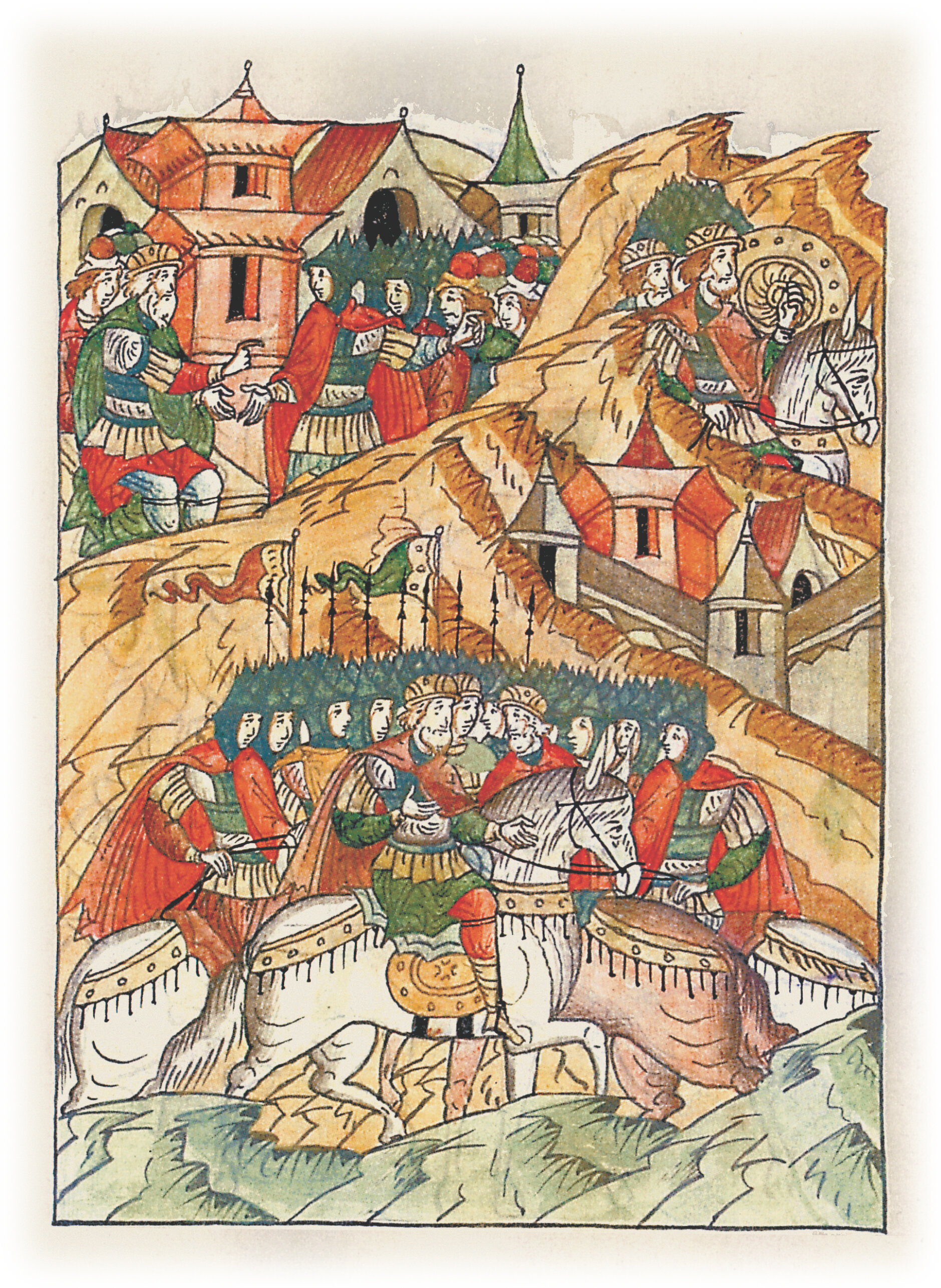 Языки говорят воеводам царя Ивана Васильевича, что магистр окопался большим рвом вокруг города Рындола, бьет из пушек и пищалей и приступает к Рындолу.