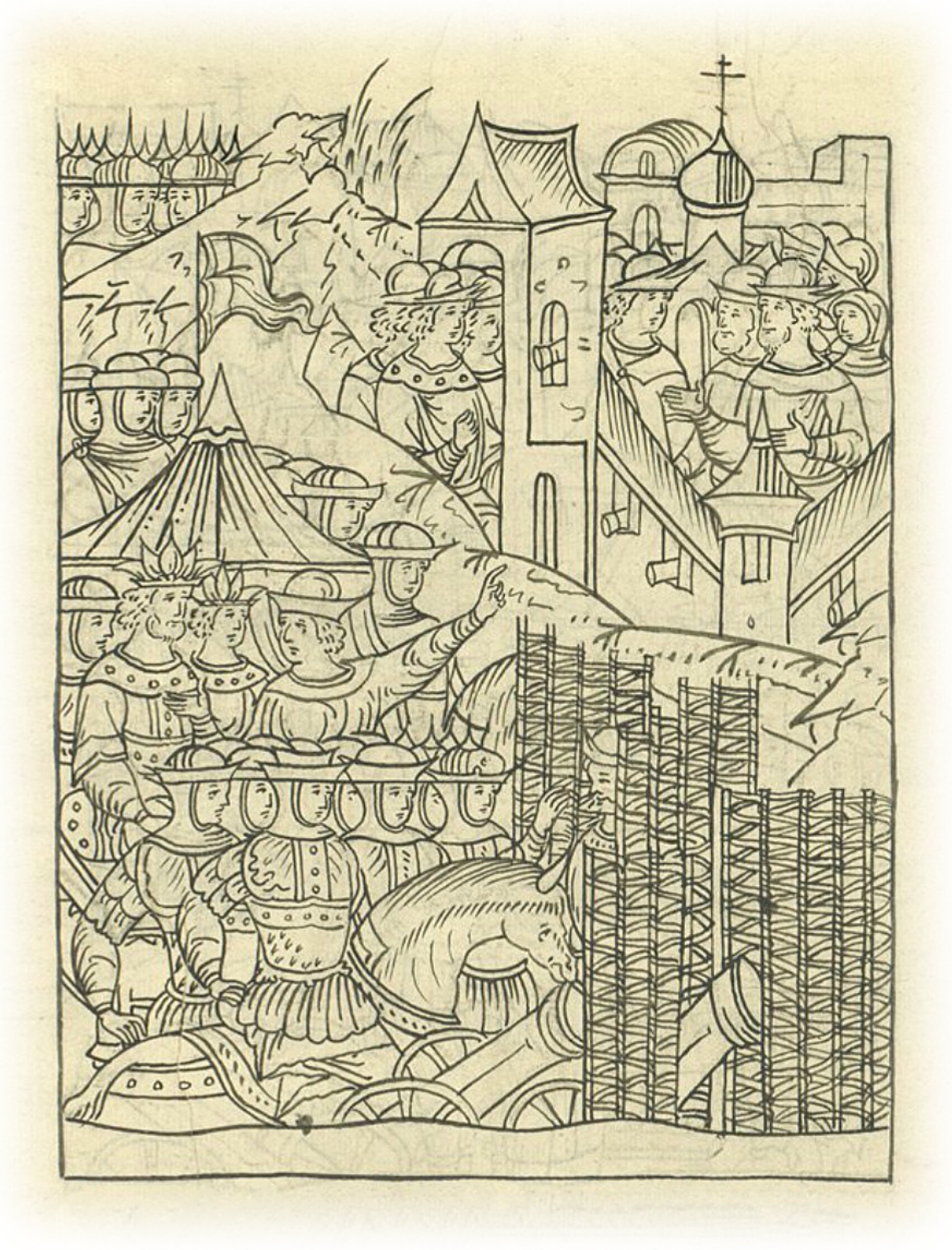 Языки говорят воеводам царя Ивана Васильевича, что магистр окопался большим рвом вокруг города Рындола, бьет из пушек и пищалей и приступает к Рындолу.