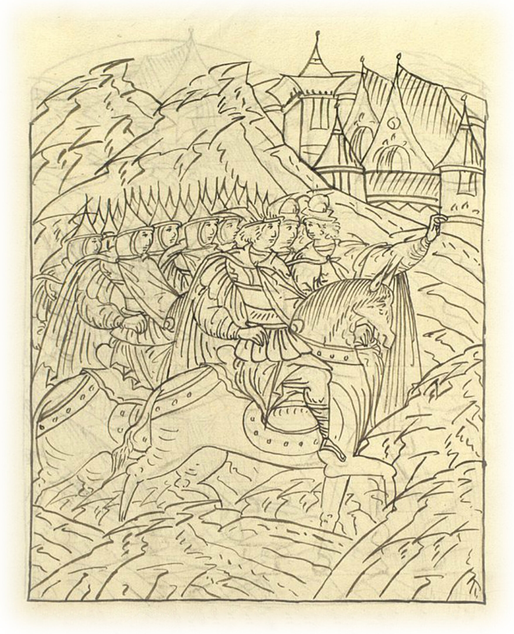 Царь Иван Васильевич с князем Владимиром Андреевичем идет к Коломне.