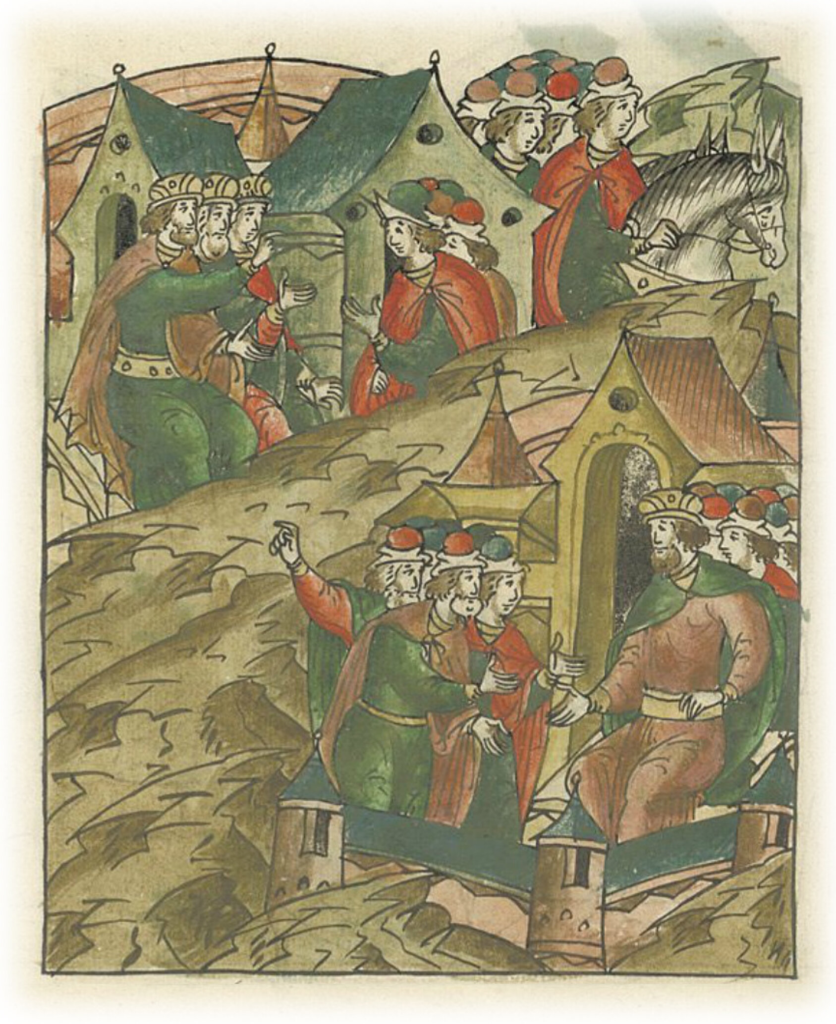 Языки говорят воеводам царя Ивана Васильевича, что магистр окопался большим рвом вокруг города Рындола, бьет из пушек и пищалей и приступает к Рындолу.