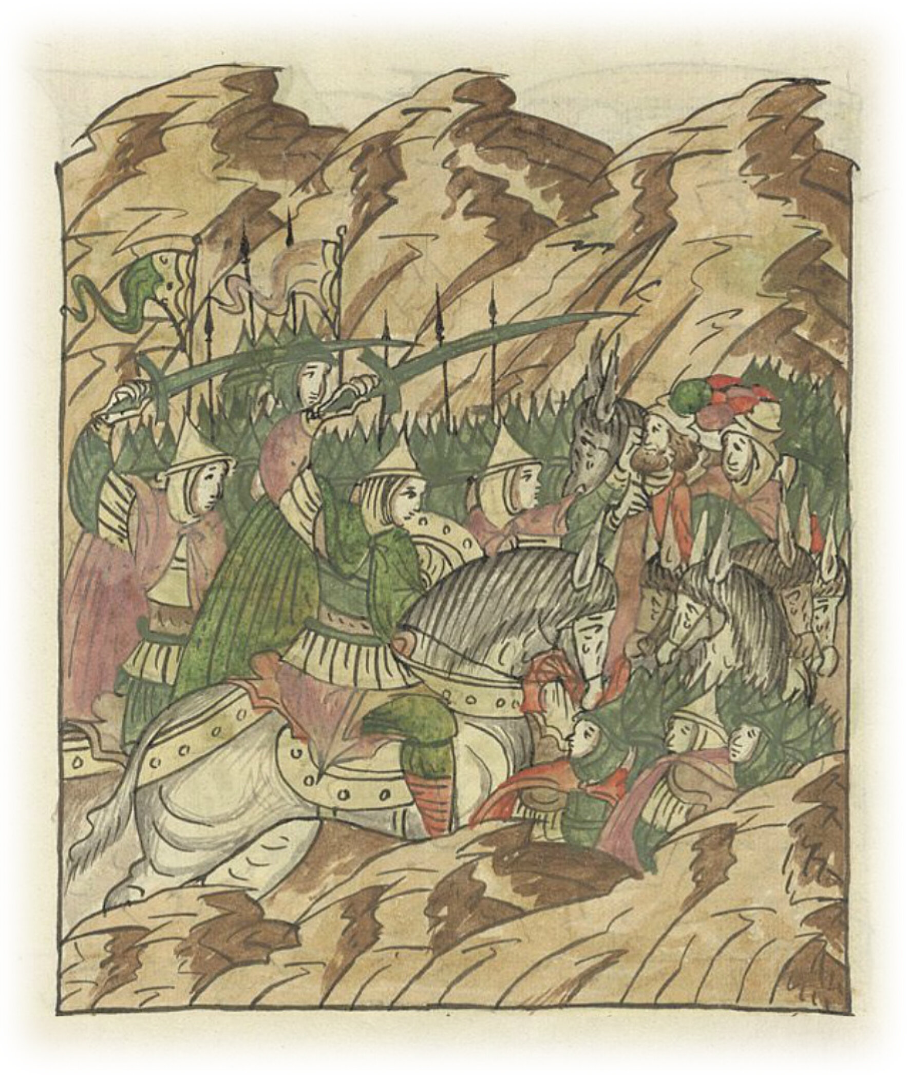 Воеводы царя Ивана Васильевича, разделившись, идут в погоню за царем Емгурчеем.