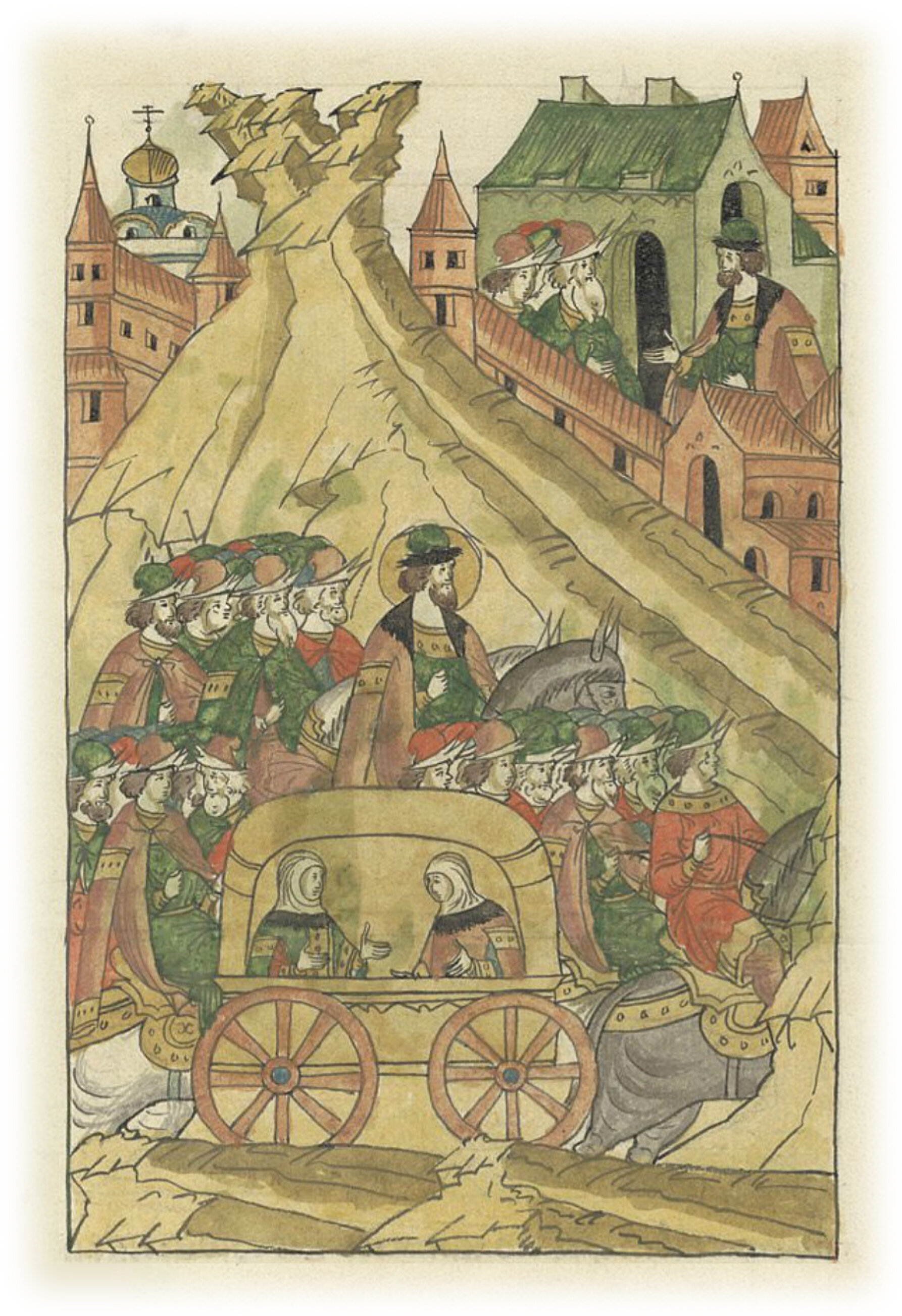 И ушел Александр к отцу своему, великому князю Ярославу Всеволодовичу Владимирскому, с матерью своей, с княгиней своей и со всем двором своим.