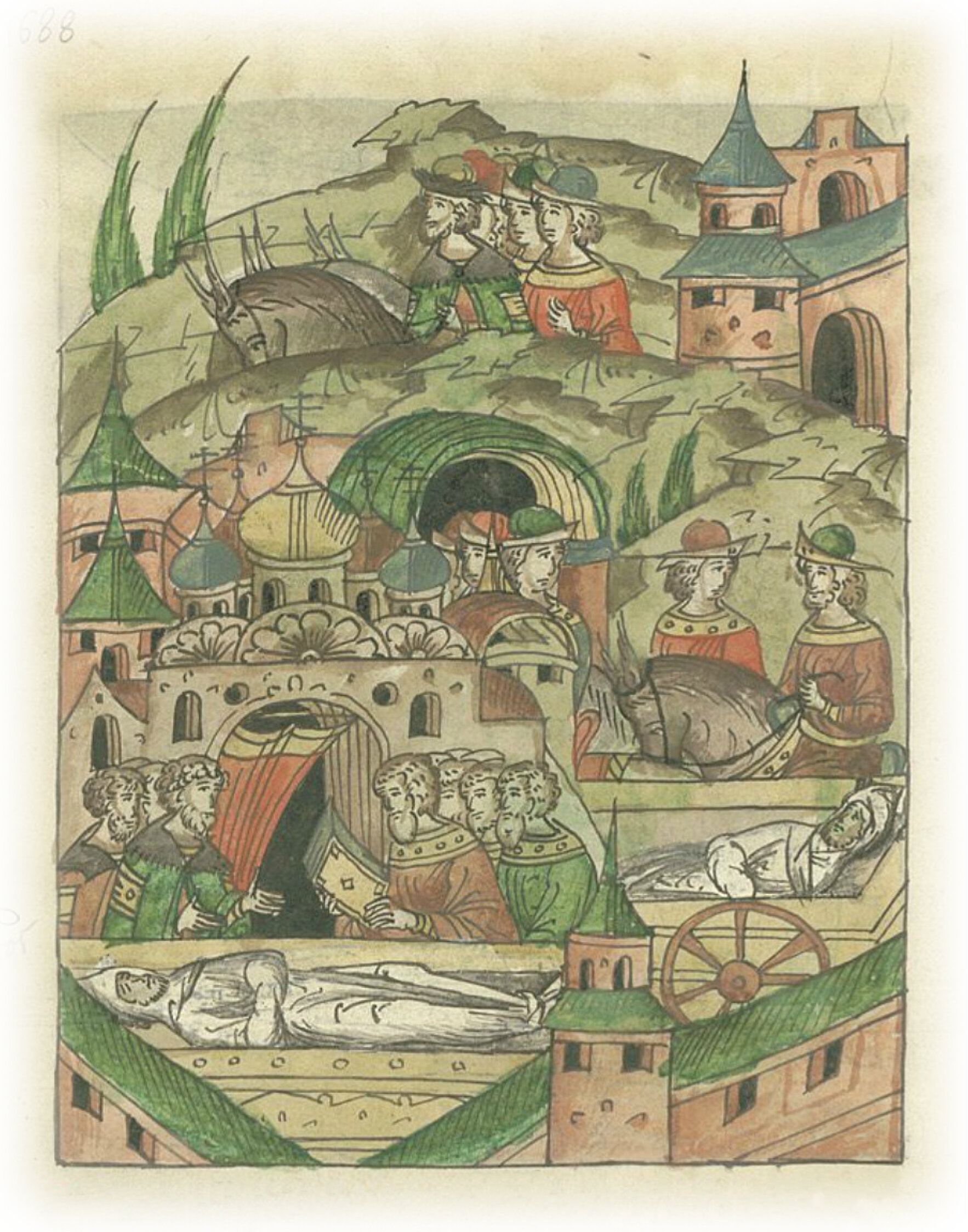 Кончина князя Нижнего Новгорода Ивана Васильевича и его похороны в Москве в церкви святого архангела Михаила.