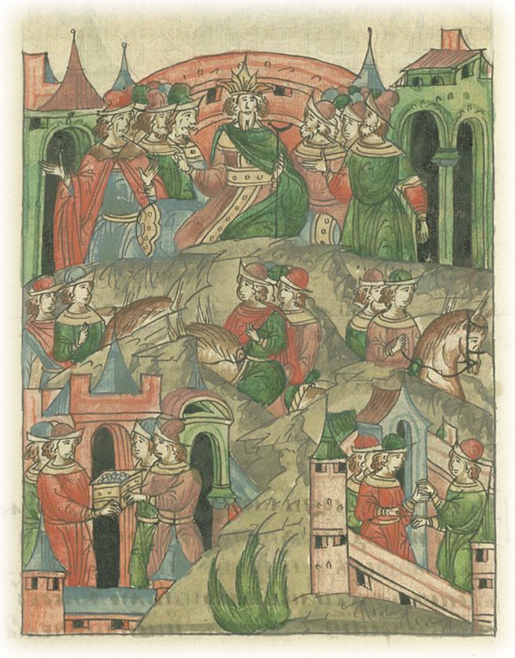Царь Большой Орды Тохтамыш избавляется от своих врагов и посылает по всем странам послов за данью.