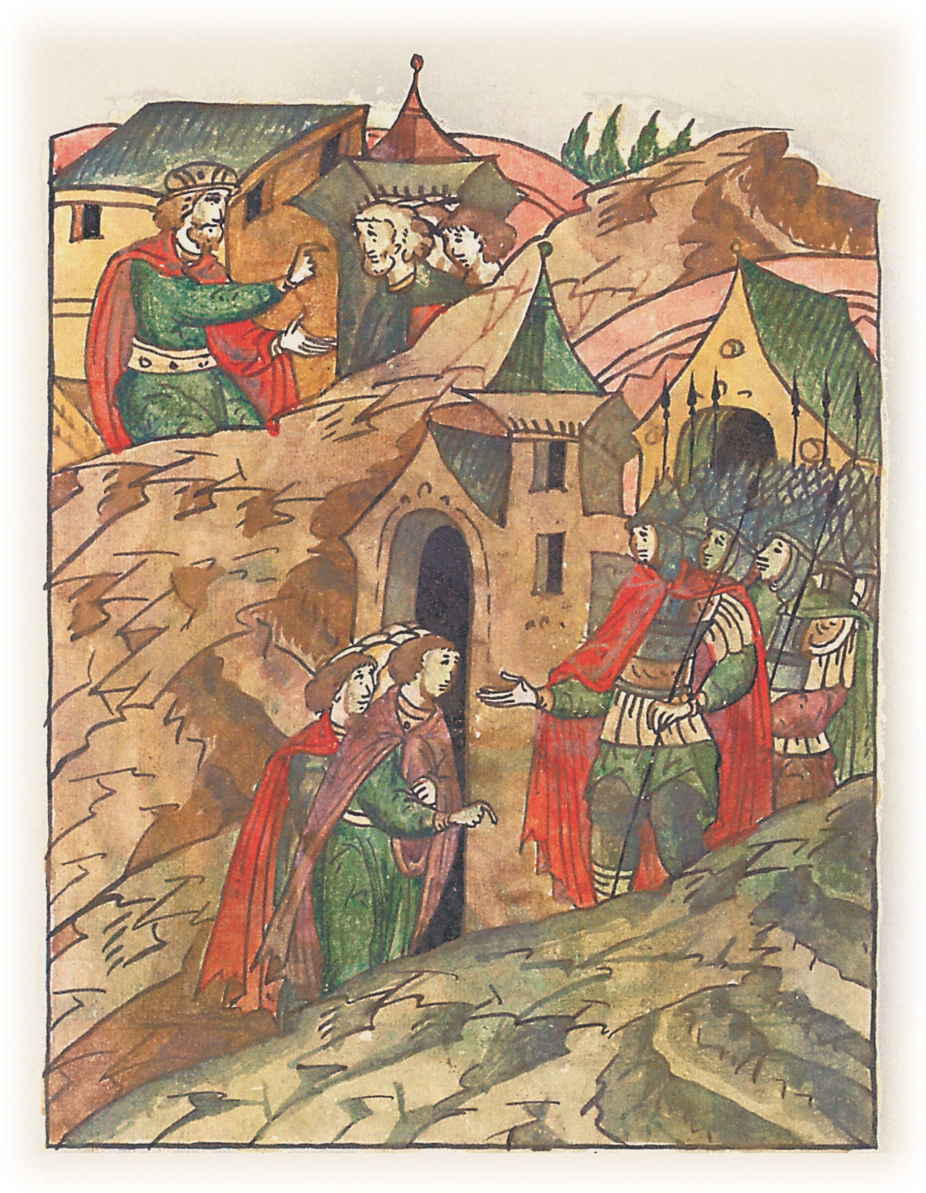Ругодивские посадники Яким и Захар приезжают в Москву. Воеводы царя Ивана Васильевича Алексей Адашев и Иван Михайлов сообщают им, что государь пожалует их, если сдадут его воеводам помимо Ругодива Вышгород.
