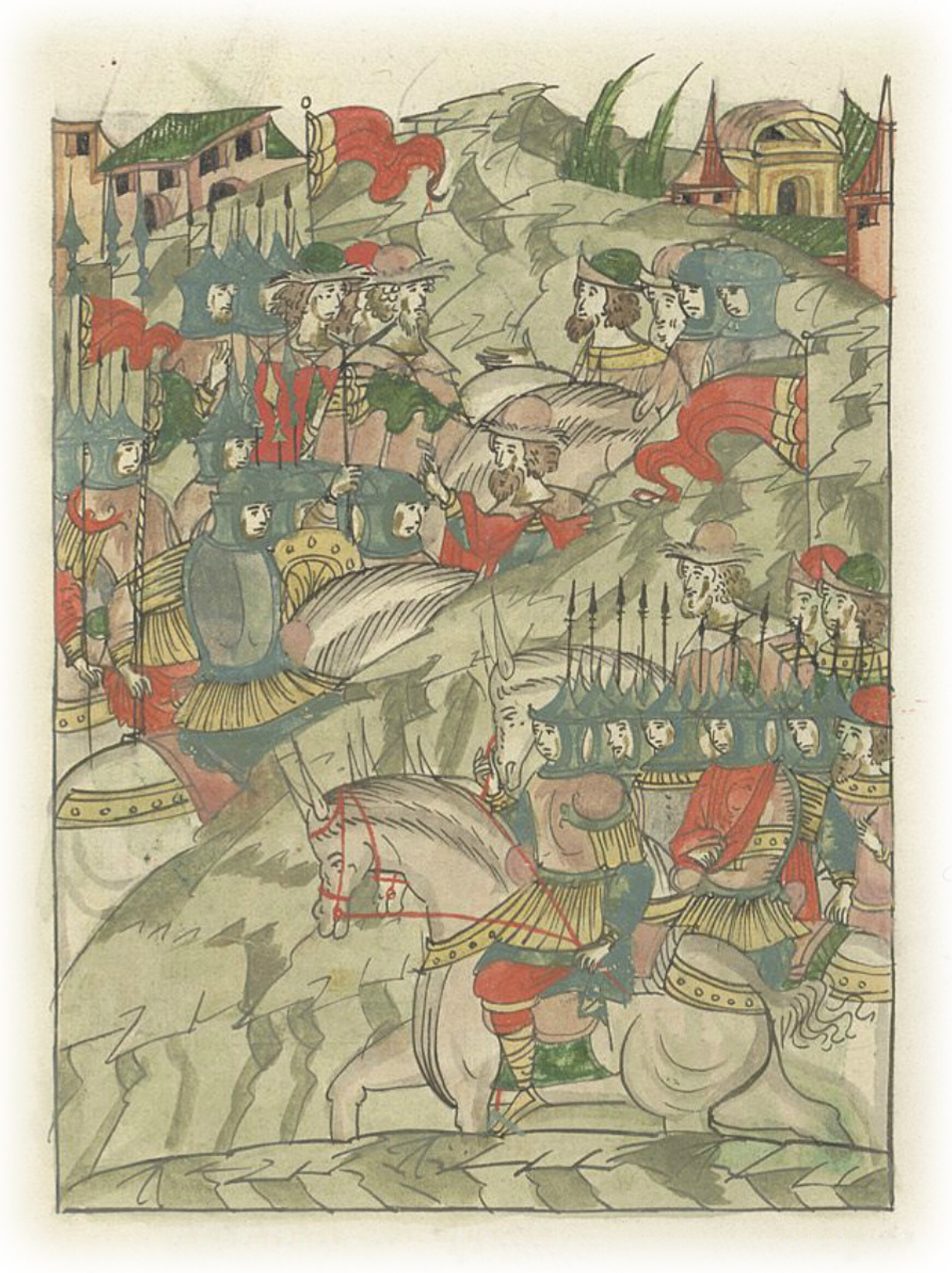 Князь Иван Баба, приехавший из Литвы служить великому князю Василию Васильевичу, снаряжает свой полк с копьями по-литовски.