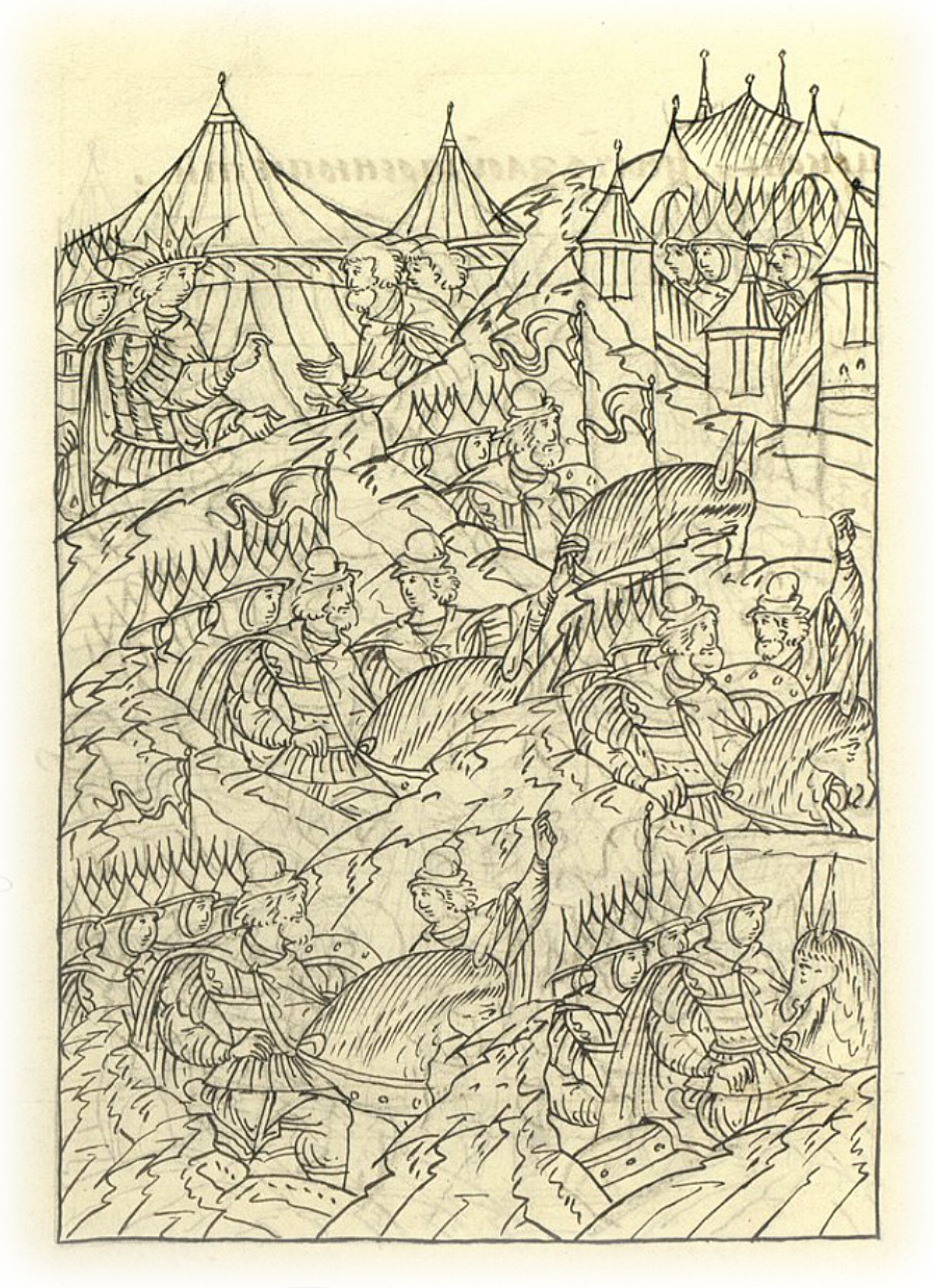 Языки говорят воеводам царя Ивана Васильевича, что магистр окопался большим рвом вокруг города Рындола, бьет из пушек и пищалей и приступает к Рындолу.