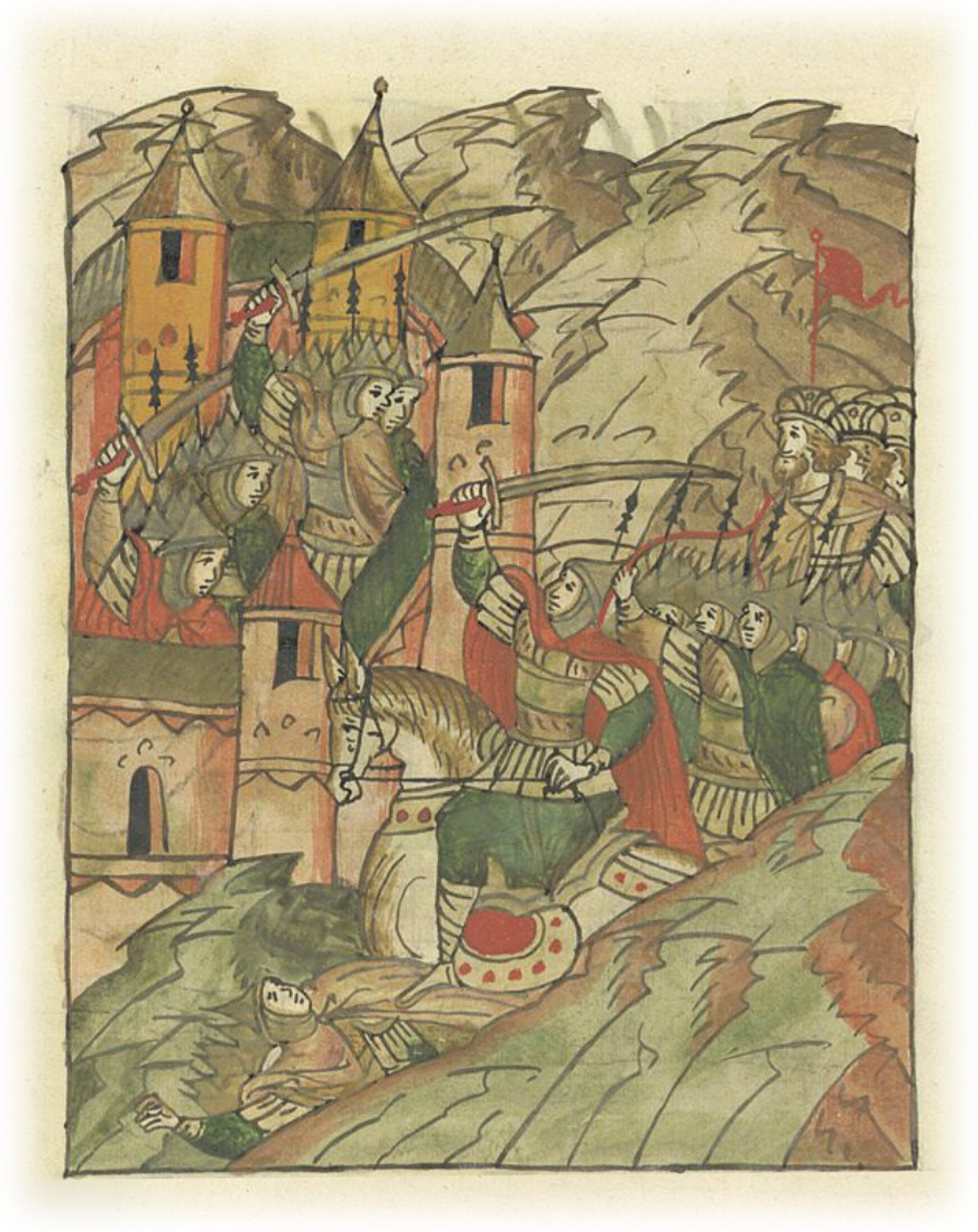 И подошли с большим войском под город Галич, и, обступив город, начали сражение, горожане бились со стен города, много людей с обеих сторон пало,