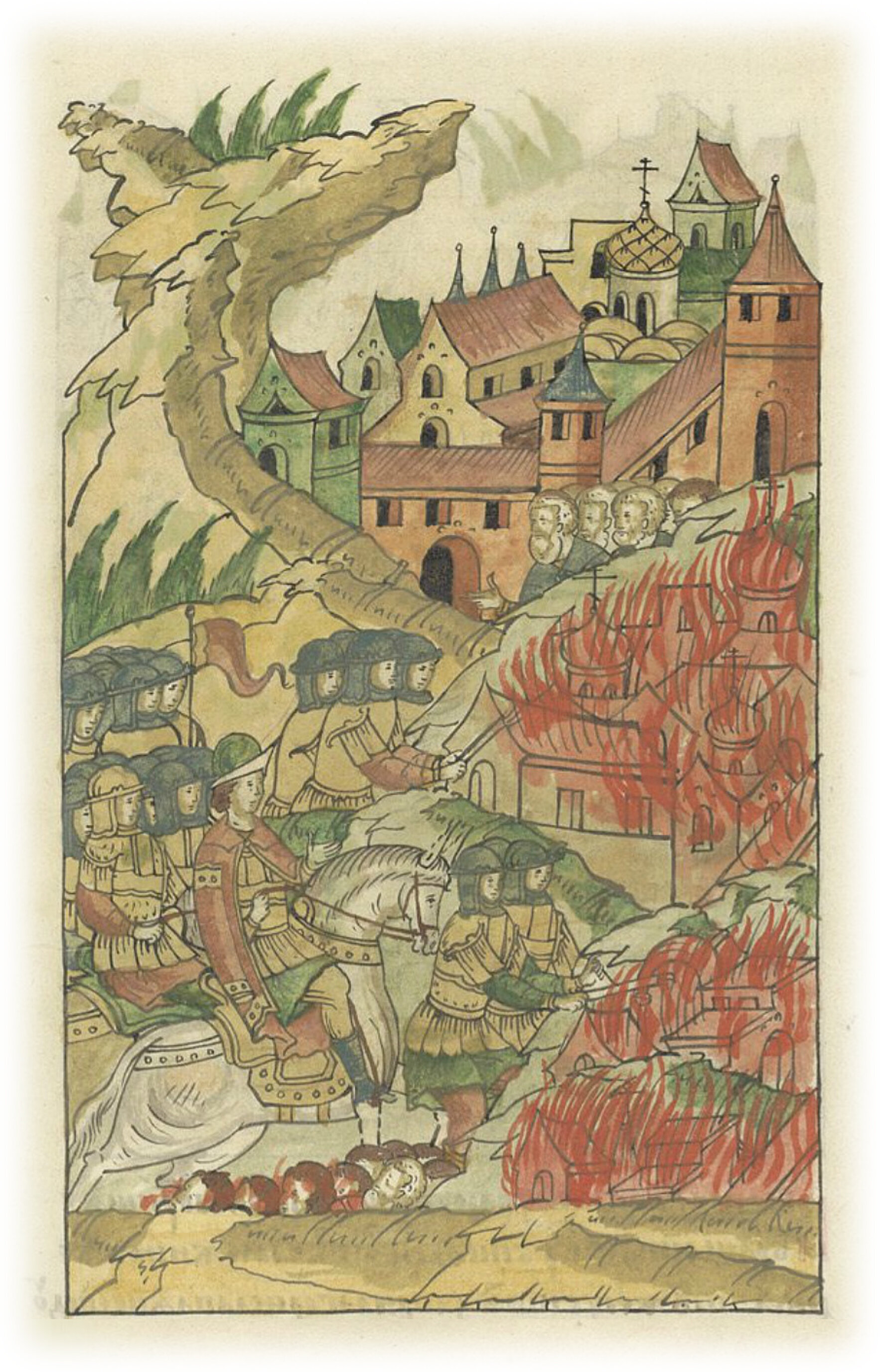 посад зажгли весь, и много зла было, и погорели церкви, и честные иконы, и вся утварь церковная,