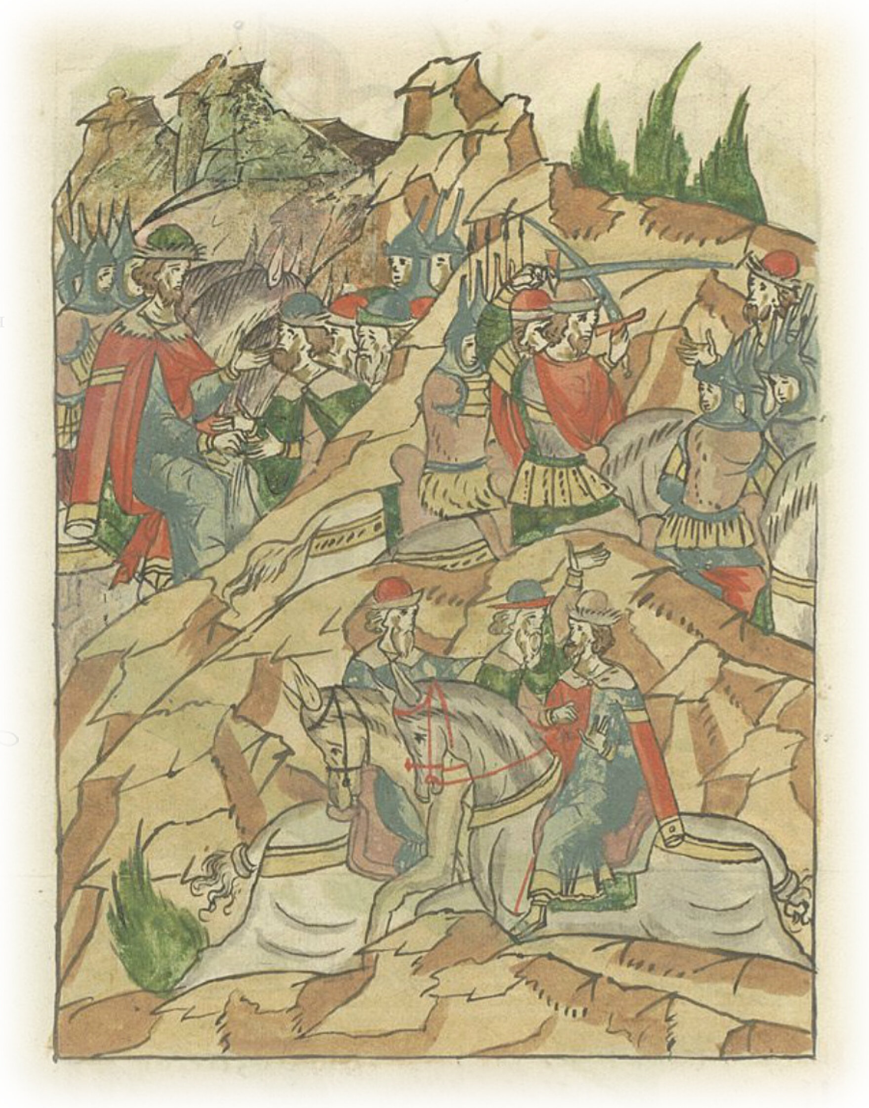 Войско великого князя Василия Васильевича прогоняет князя Василия Юрьевича Косого и его полки. Князь Иван Баба Друцкий хватает князя Василия Юрьевича и приводит к великому князю.