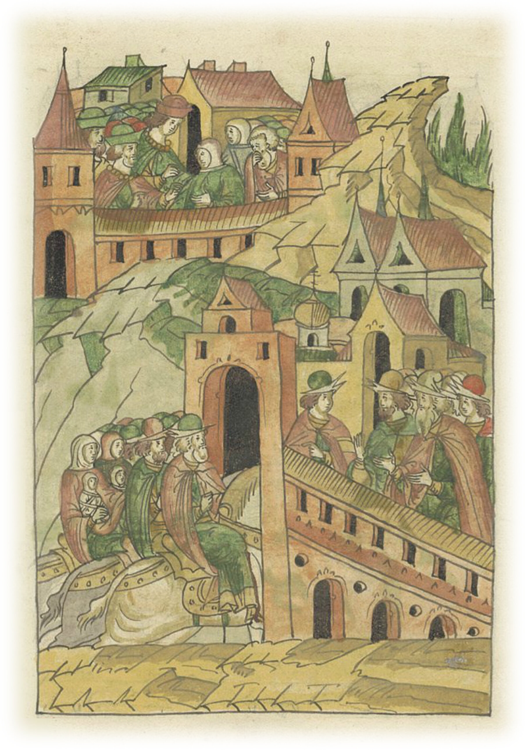 Псковичи от насилия немцев бегут с семьями в Новгород.