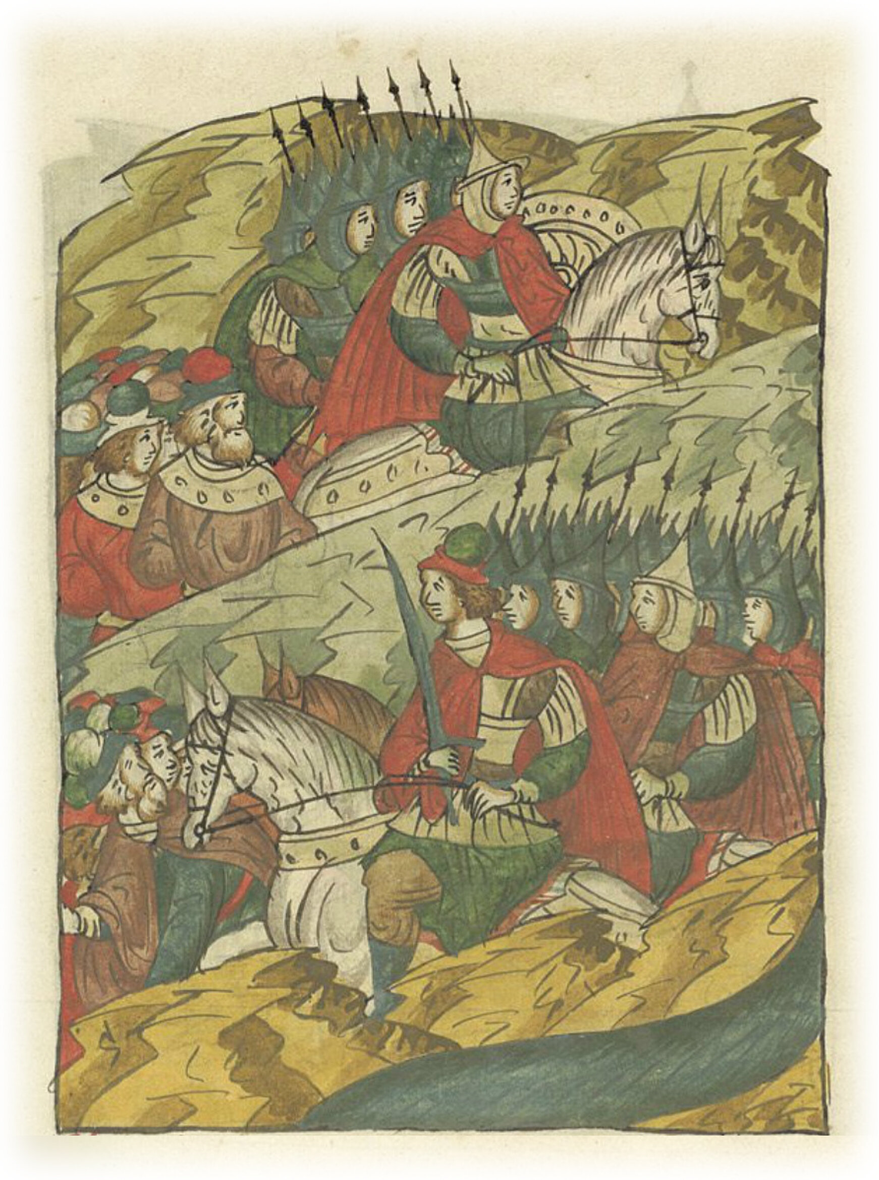 Воеводы царя Ивана Васильевича, разделившись, идут в погоню за царем Емгурчеем.