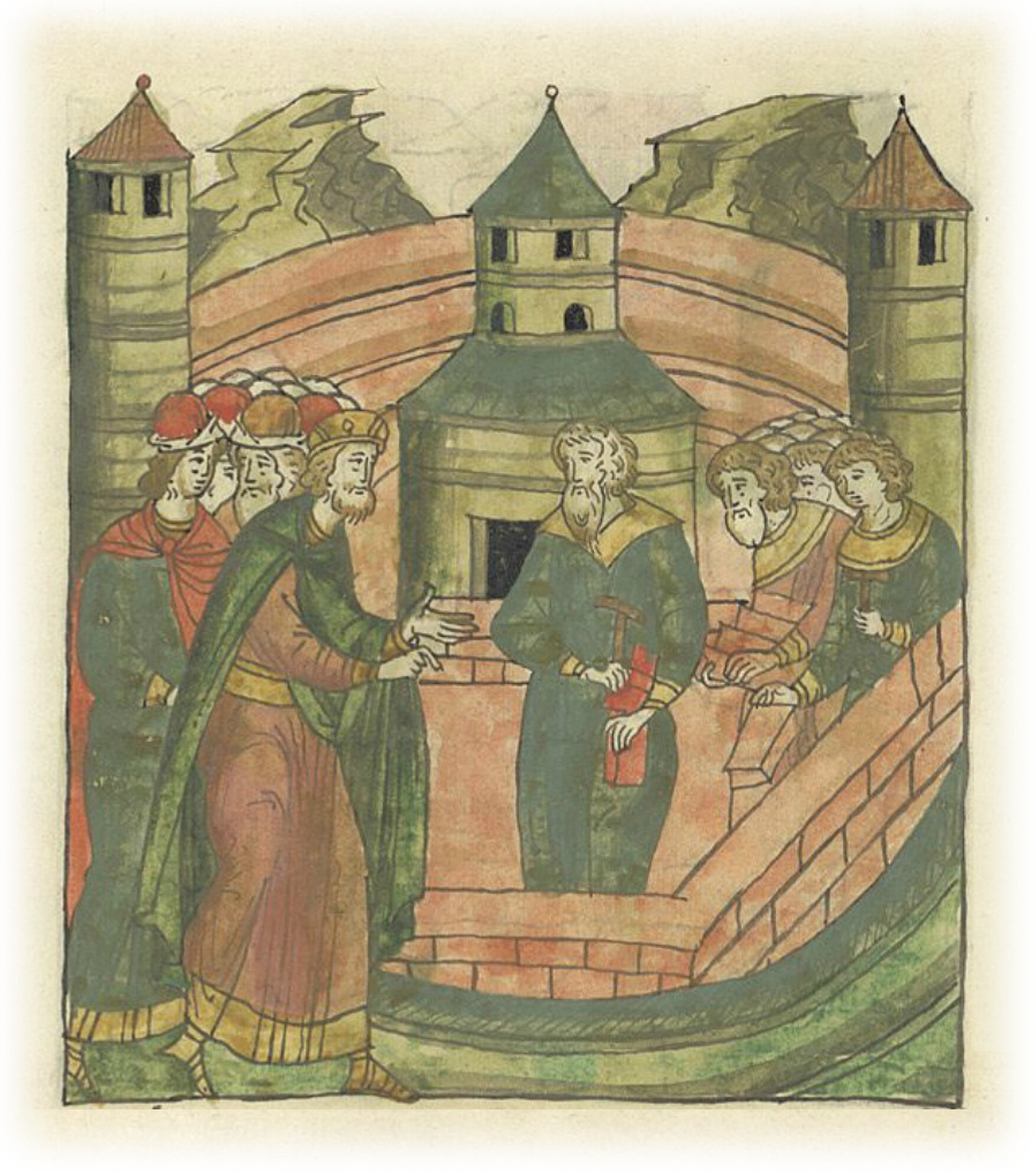 Ругодивские посадники Яким и Захар приезжают в Москву. Воеводы царя Ивана Васильевича Алексей Адашев и Иван Михайлов сообщают им, что государь пожалует их, если сдадут его воеводам помимо Ругодива Вышгород.