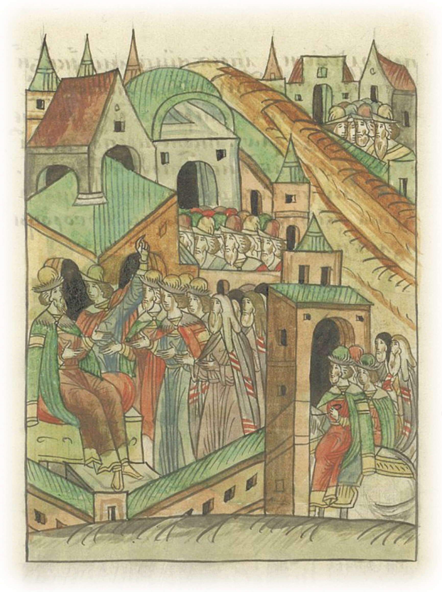 И, когда все сошлись к нему, тогда всем возвестил мысль свою, что хочет идти на Новгород ратью, ибо во всем они изменили и никакой правды не обретается в них нисколько. (Но вопрос в том): «Пойти ли сейчас на них, или не пойти? Так как уже летнее время, а в земле их много воды, и озера великие, и реки, и болота многие и непроходимые. И прежние великие князья в то время на них не ходили, а кто ходил, тот многих людей потерял». И задумались о том немало, и стали уповать на Господа Бога и пречистую матерь Его, и на силу честного и животворящего креста, целованию которого новогородцы изменили.