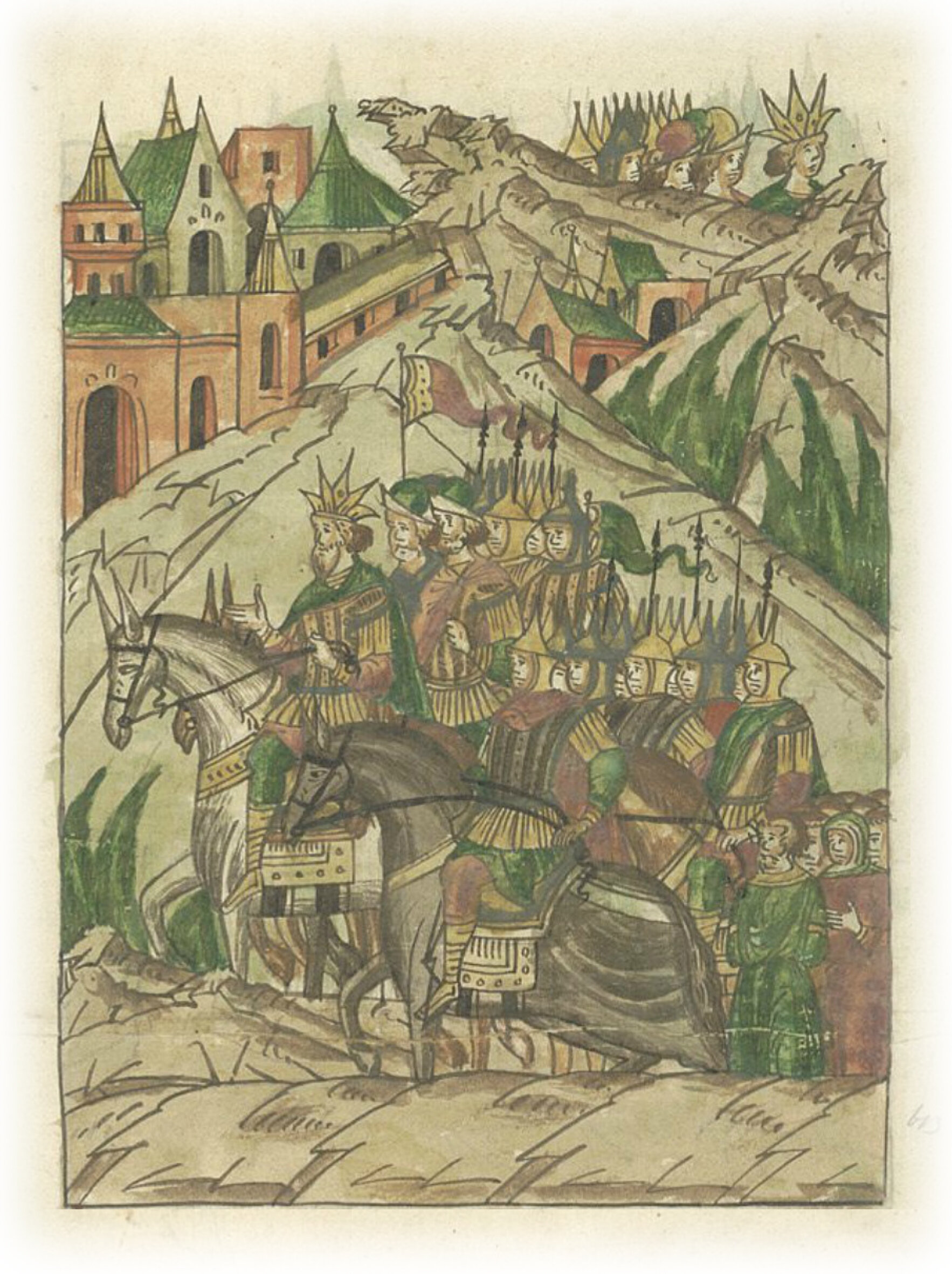 Языки говорят воеводам царя Ивана Васильевича, что магистр окопался большим рвом вокруг города Рындола, бьет из пушек и пищалей и приступает к Рындолу.