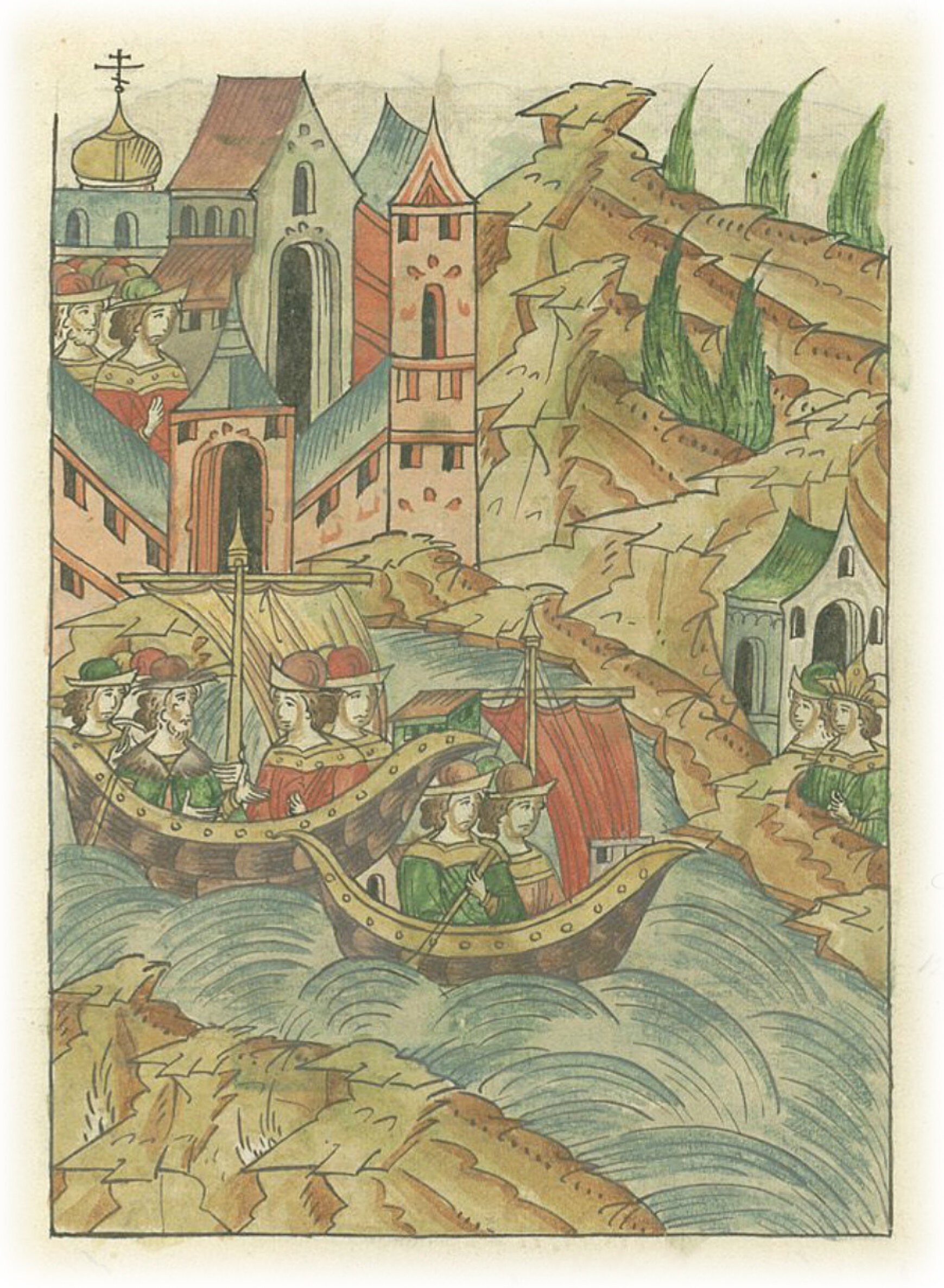 Великий князь Иван Михайлович Тверской идет в Орду на кораблях по Волге к царю Шадибеку.