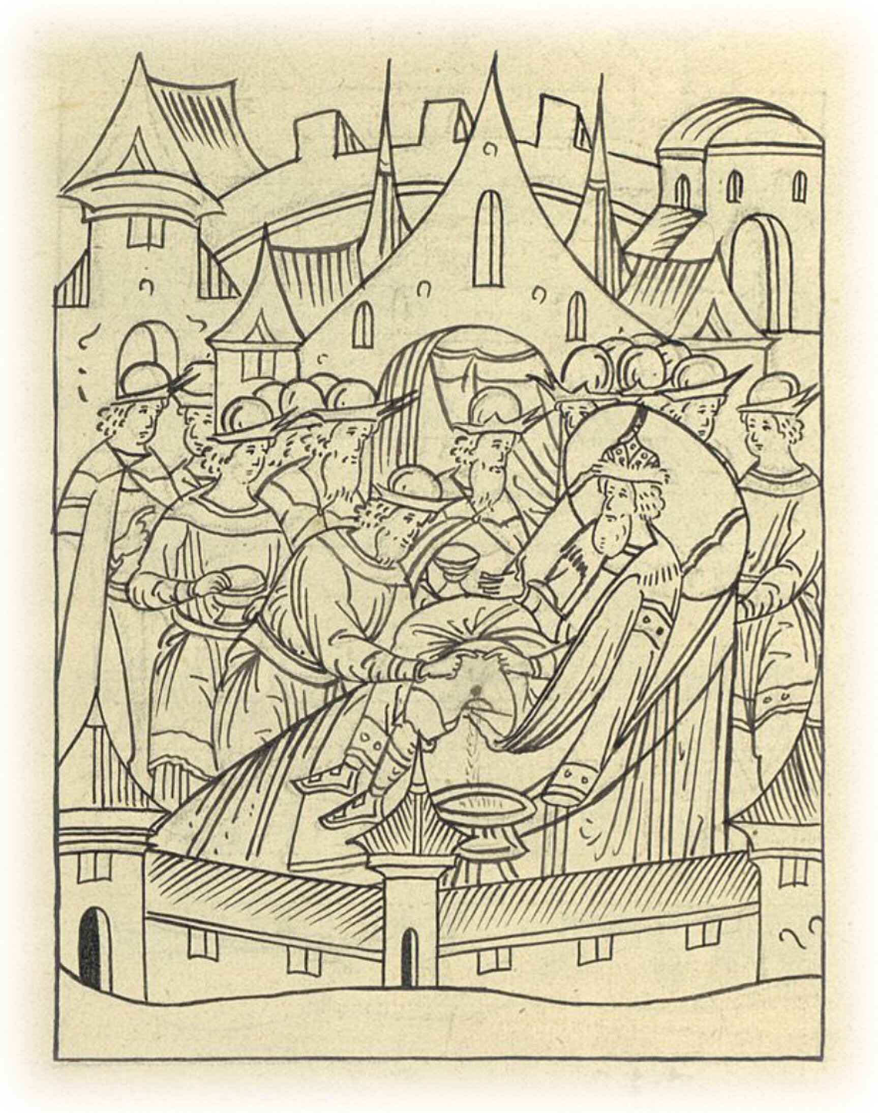И повелел князь великий прикладывать мазь к болячке; и начал из болячки гной идти понемногу, и постепенно больше, до полутаза и по тазу; и был князь великий в скорби и болезни великой.