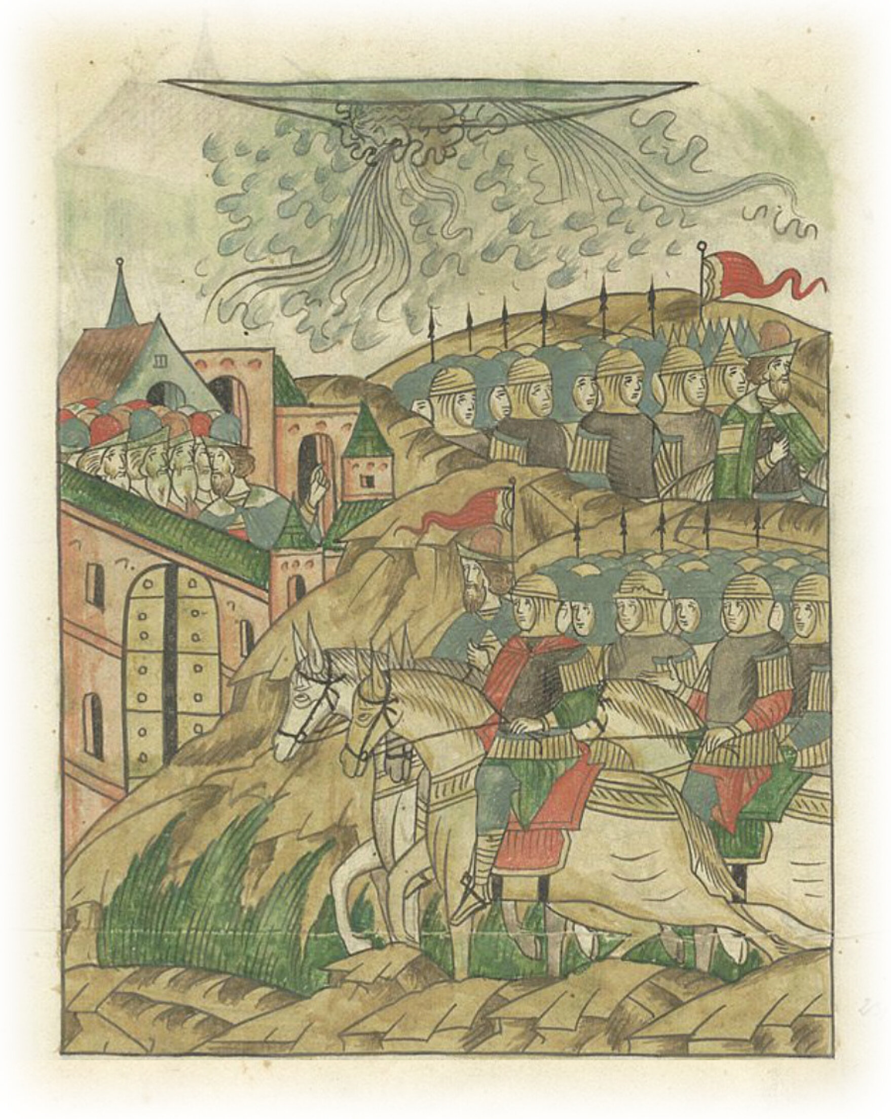 Страшный гром и ветер. Литовский князь Скригайло с немецким войском нападает на Полоцк, но, не взяв его, уходит.