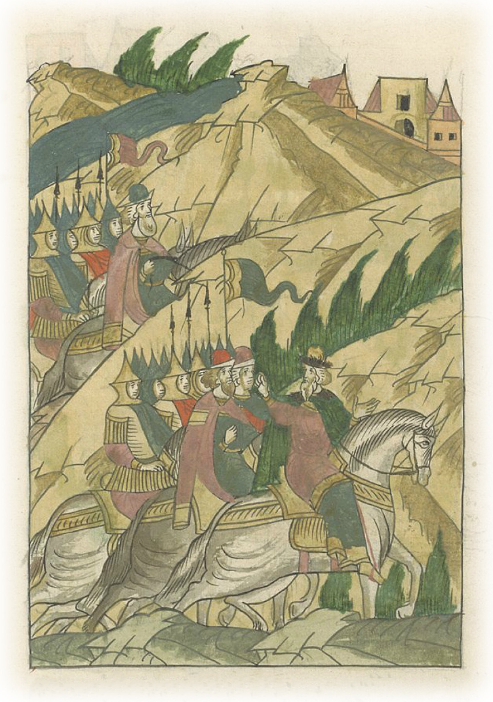 А справа же от себя велел идти между своей дорогой и Мстой князю Семену Ивановичу Ряполовскому, а с ним – суздальцы и юрьевцы.