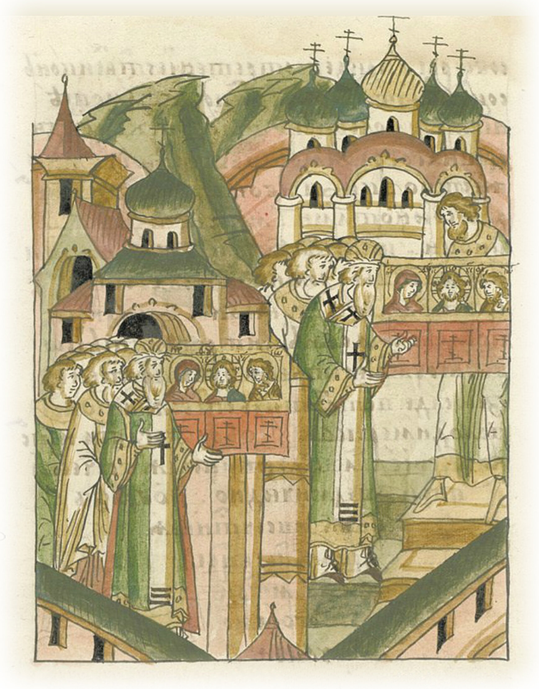 И совершив тут молебное пение и божественую службу, пошли в город и поставили святые иконы в соборной церкви пречистой Богородицы, славя и благодаря Христа Бога нашего и пречистую Его матерь.