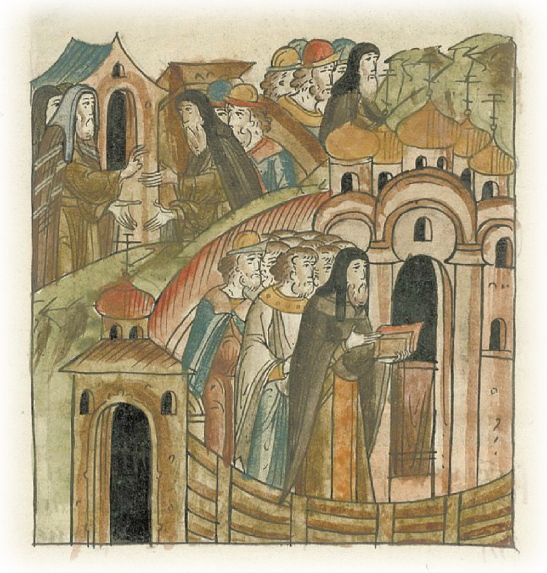 Поставление на игуменство в Спасский монастырь на Хутыни Феодосия.