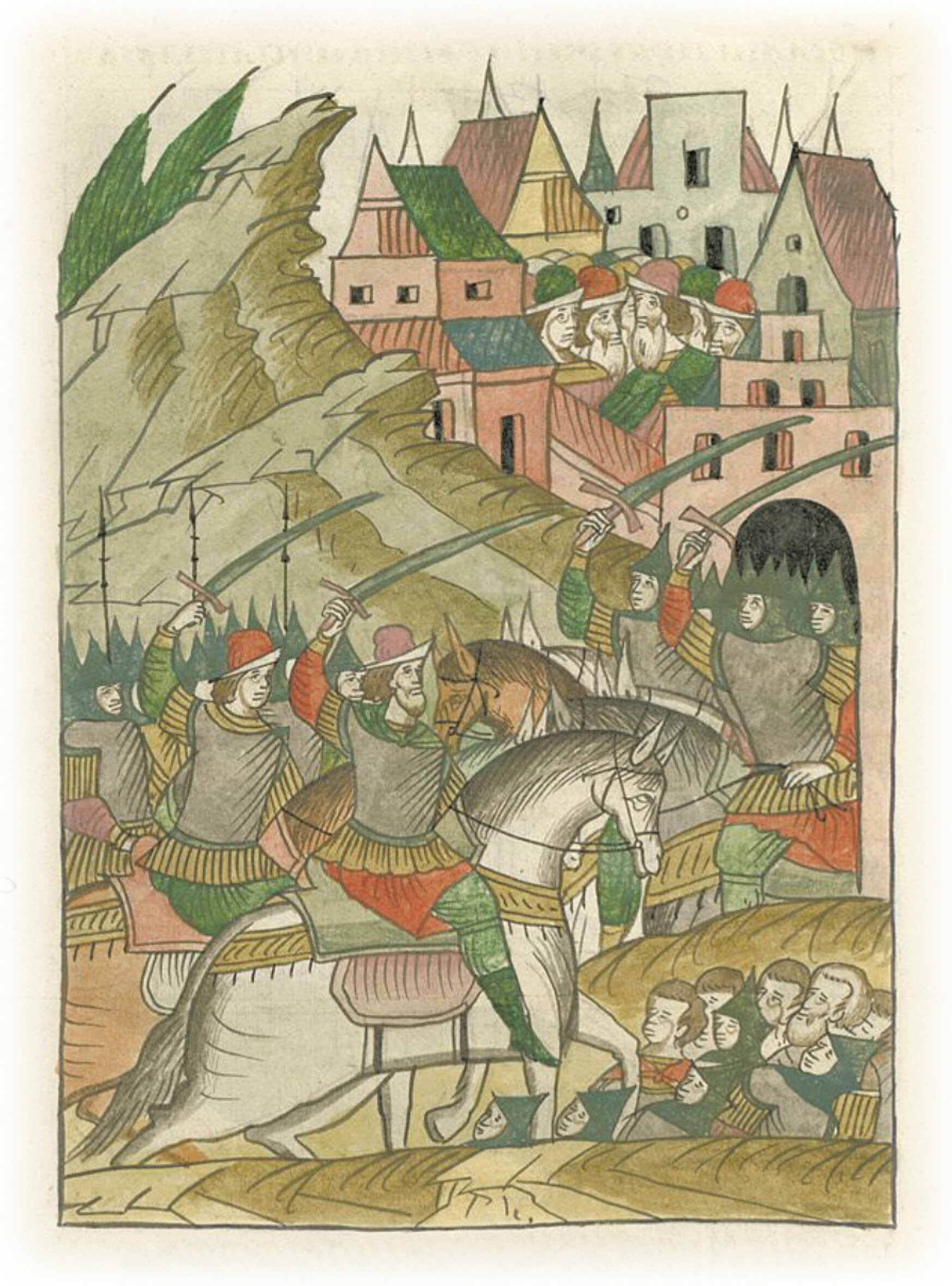 Языки говорят воеводам царя Ивана Васильевича, что магистр окопался большим рвом вокруг города Рындола, бьет из пушек и пищалей и приступает к Рындолу.
