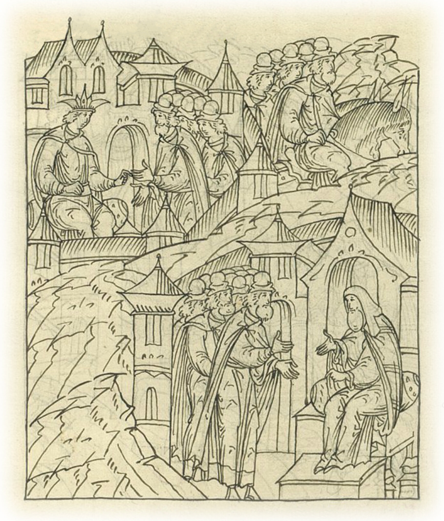 Ругодивские посадники Яким и Захар приезжают в Москву. Воеводы царя Ивана Васильевича Алексей Адашев и Иван Михайлов сообщают им, что государь пожалует их, если сдадут его воеводам помимо Ругодива Вышгород.