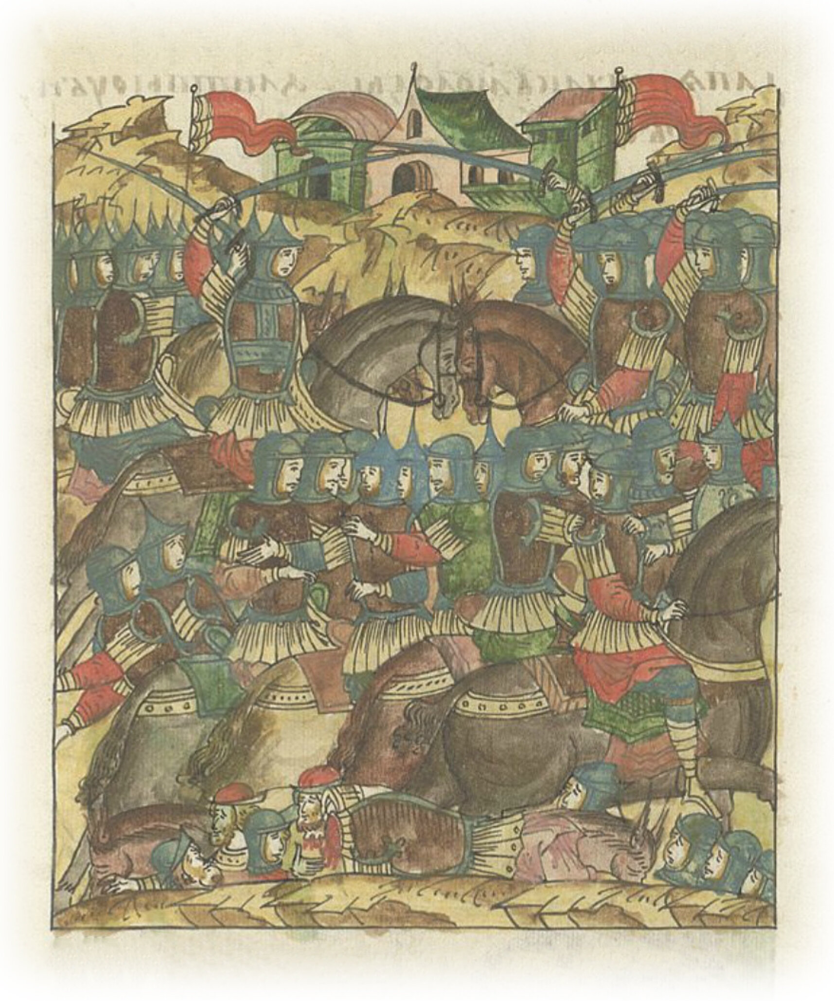 И встретились они с литовцами в Суходреве, и начался между ними бой, и убили там воеводу князя Ивана Андреевича Можайского, князя Андрея Васильевича Лугвицу (родом) из Суздальских князей и Карачарова, и других четырех человек; а Яропку и Семена Ржевского взяли в плен, и воевод князя Ивана Андреевича Можайского, и воевод его брата князя Михаила Андреевича Верейского взяли в плен: Судока, Филиппа Щекина и Конинского, и еще пять человек молодых воинов; а литовцев убили двести человек.