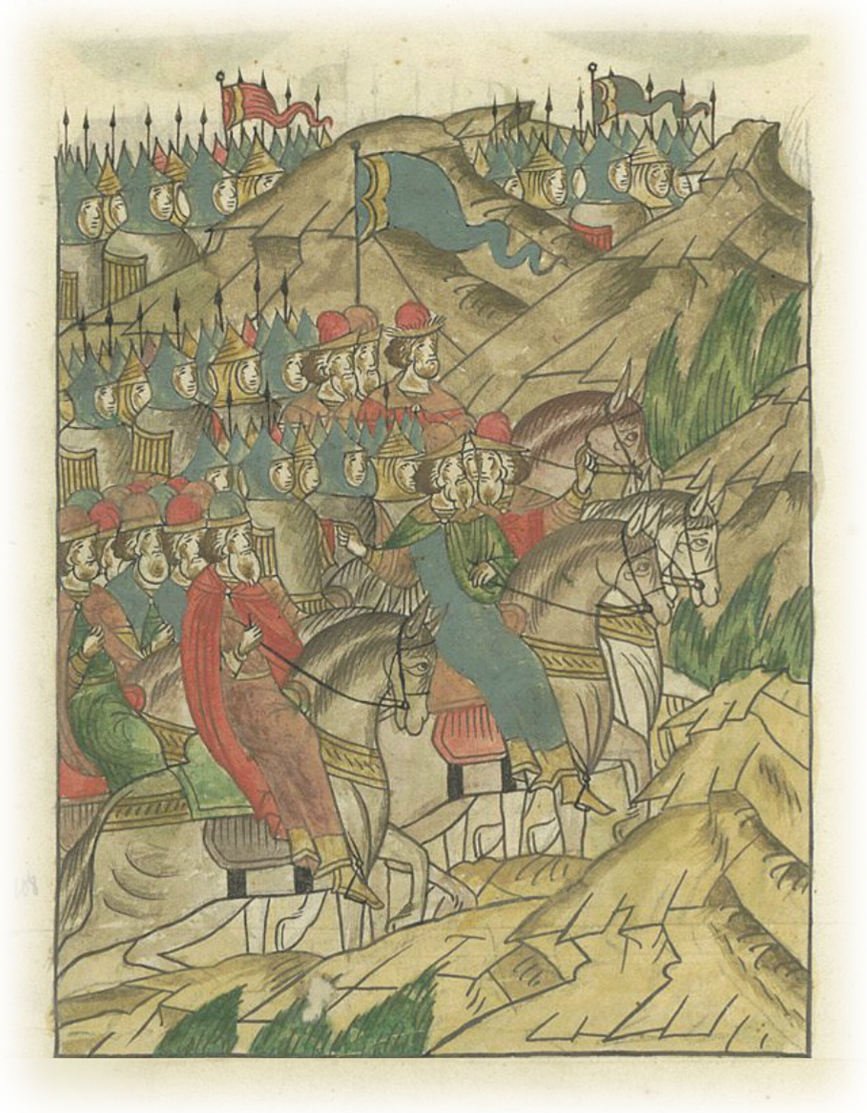 Воеводы царя Ивана Васильевича, разделившись, идут в погоню за царем Емгурчеем.