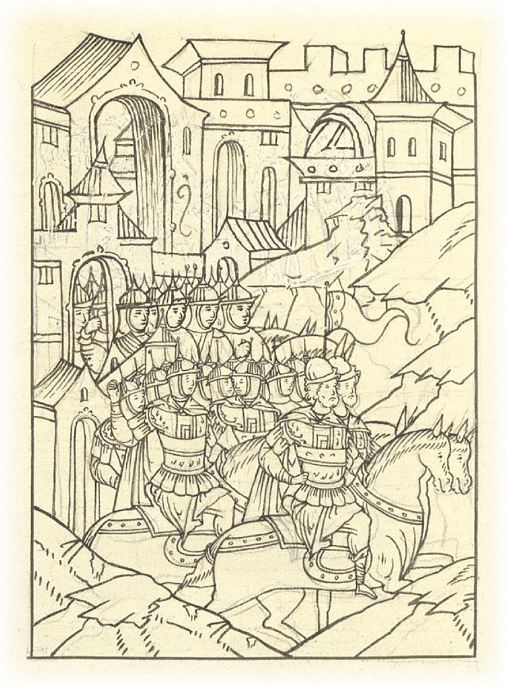 Языки говорят воеводам царя Ивана Васильевича, что магистр окопался большим рвом вокруг города Рындола, бьет из пушек и пищалей и приступает к Рындолу.