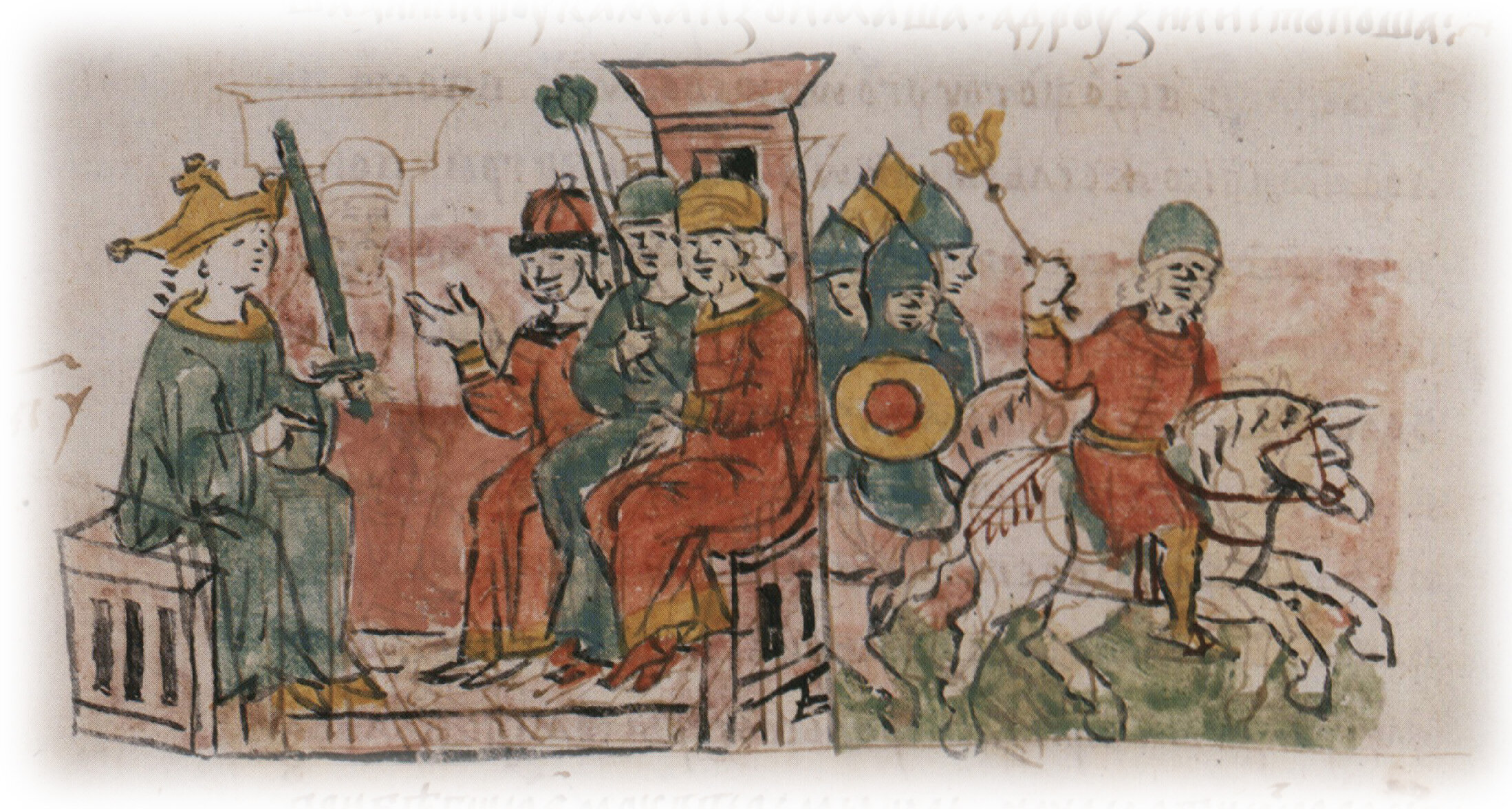 Сизов В. И. Миниатюры Кенигсбергской летописи // ИОРЯС. СПб., 1905. Т. 10. Кн. 1. с. 28—29; Арциховский А. В. Древнерусские миниатюры как исторический источник. М./1944. с. 9; Рыбаков Б. А. “Слово о полку Игореве” и его современники. М., 1971. с. 15, 19; Рыбаков Б. А. “Слово о полку Игореве” и его современники. М., 1971. V, с. 221; Рыбаков Б. А. Петр Бориславич. Поиск автора “Слова о полку Игореве”. М., 1991. с. 183; 212—213.