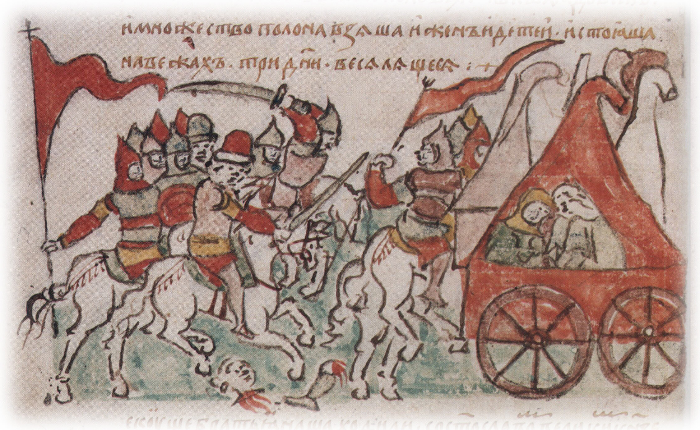 "В лето 6694. ...А сии к ним идут к вежам их. Они же не пустячи в вежи стретоша их, а дружины не дождавше, и соступишеся. И побежени бывше половци. И биша я до вежь... и стояша на вежах три дни веселящеся...".