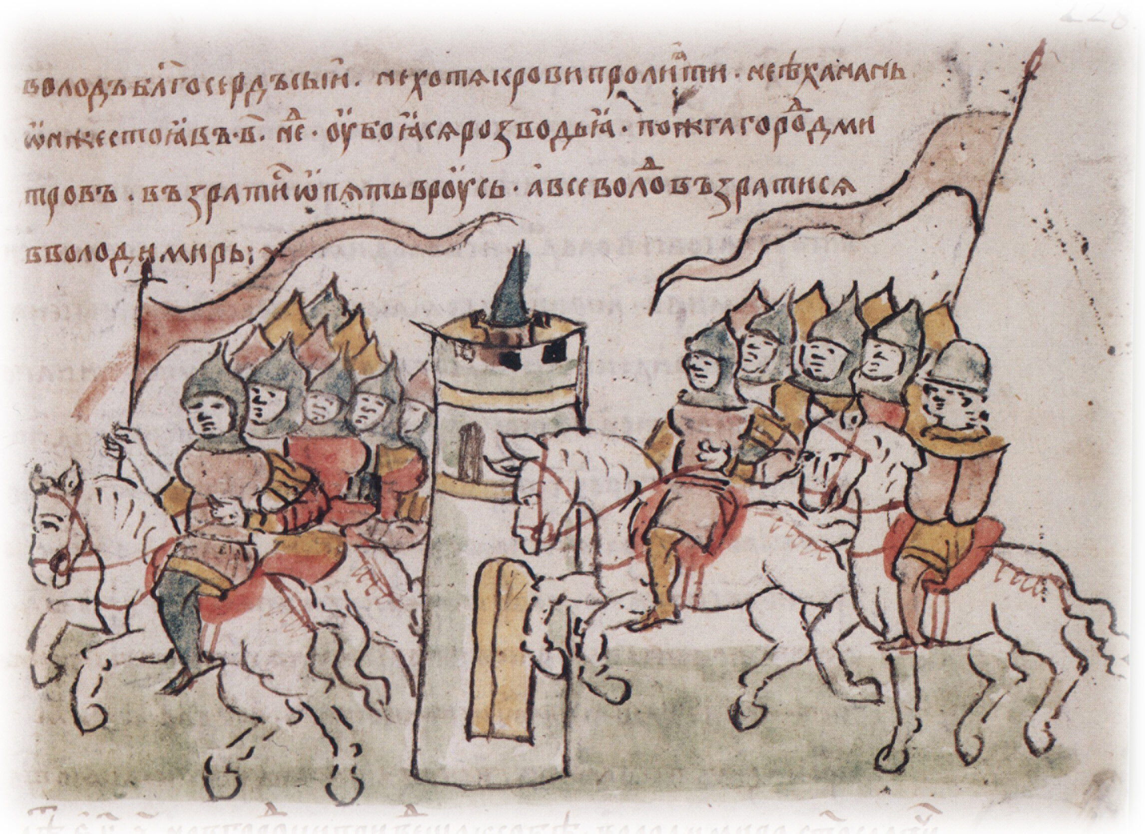 Выступление Всеволода Юрьевича Владимирского против Святослава Всеволодовича Киевского; отход войск Святослава после сожжения города Дмитрова.
