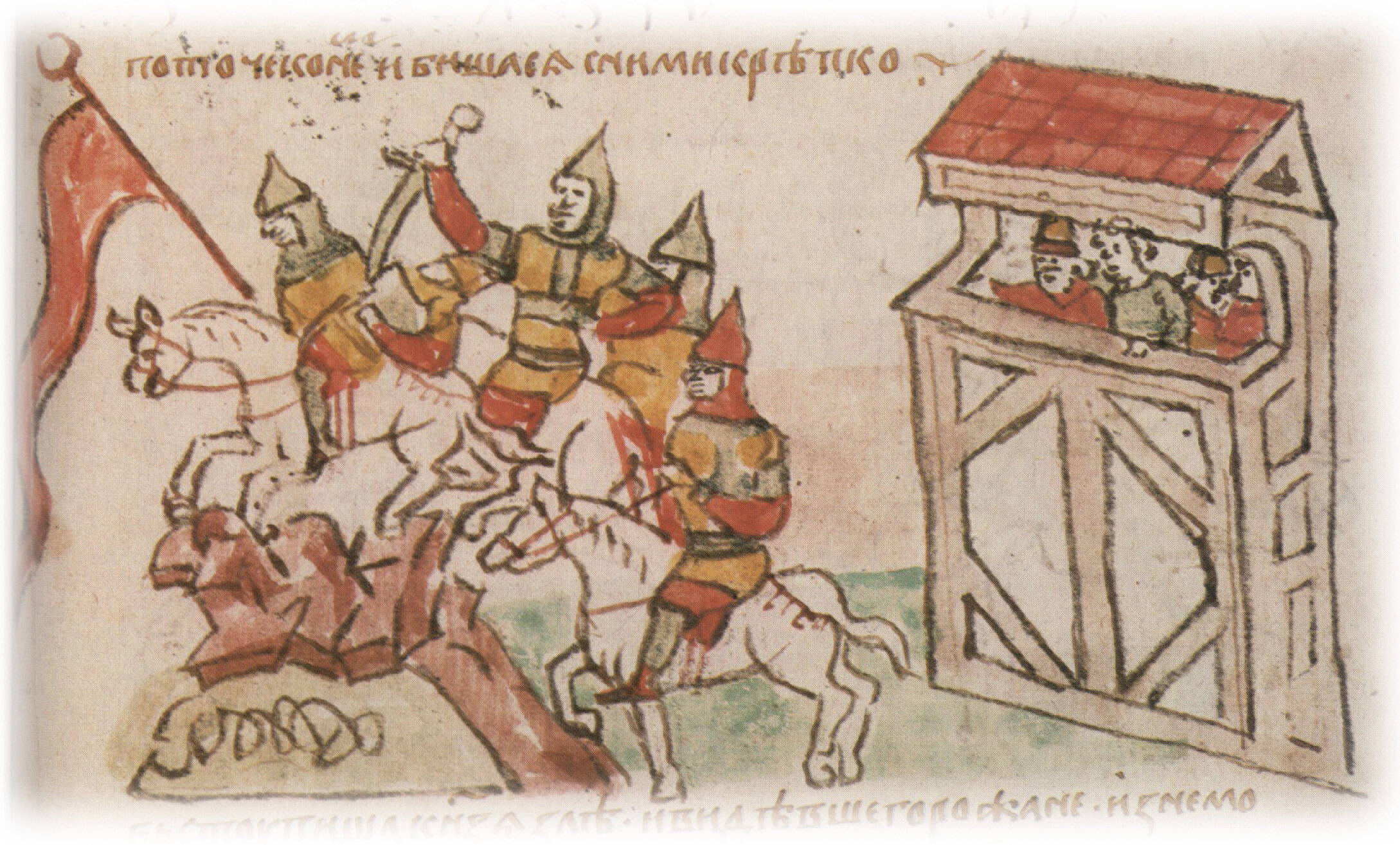 Кондаков Н. П. О миниатюрах Кенигсберского списка начальной летописи // Радзивиловская, или Кенигсбергская, летопись. СПб., 1902. Т. 2. Статьи о тексте и миниатюрах летописи. с. 127; Сизов В. И. Миниатюры Кенигсбергской летописи // ИОРЯС. СПб., 1905. Т. 10. Кн. 1. с. 46; "Слово" с. 413 (с ошибочной отсылкой); Подобедова О. И. Миниатюры русских исторических рукописей. К истории русского лицевого летописания. М., 1965. с. 62; Рыбаков Б. А. “Слово о полку Игореве” и его современники. М., 1971. с. 264—265; Рыбаков Б. А. “Слово о полку Игореве” и его современники. М., 1971. V с. 233—234; Амосов А. А. О пространственном построении миниатюр Радзивиловской летописи // Общественное сознание, книжность, литература периода феодализма. К 60-летию со дня рождения член- корр. Н. Н. Покровского. Сб. науч. тр. Новосибирск, 1990. С. 89—93. с. 89—92.