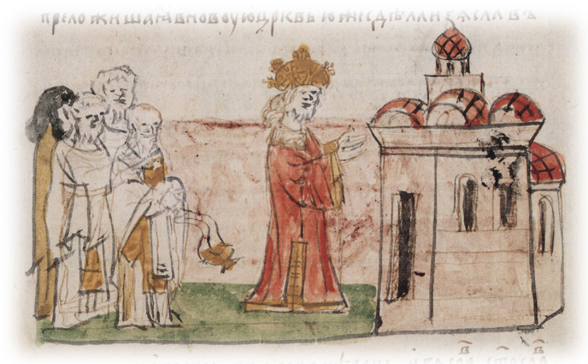 Служба при перенесении мощей Бориса Владимировича и Глеба Владимировича в новую церковь, заложенную Изяславом Ярославичем Киевским.
