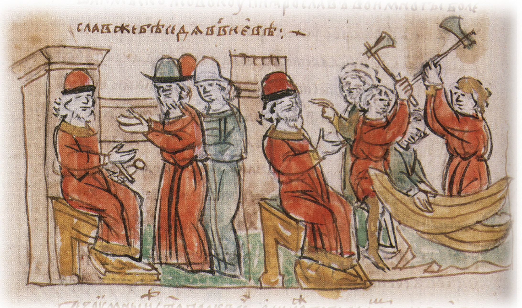 Варка киселя из болтушки и сыты в Белгороде в присутствии печенегов, пришедших с корчагами; испробование печенежскими князьями приготовленных кушаний, наличие которых в осажденном городе привело врагов в изумление и заставило снять осаду города.