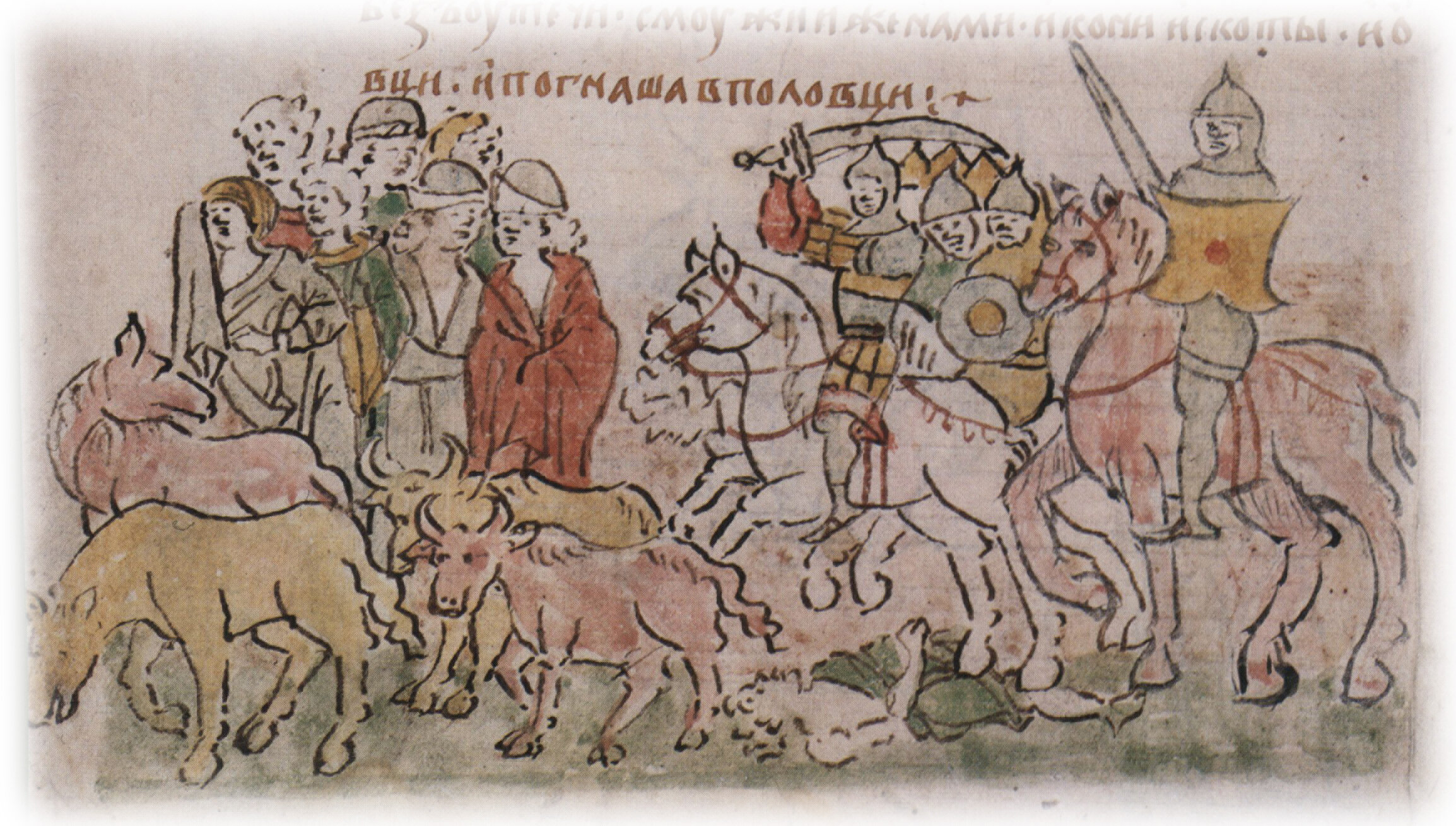 "И ехаша за Киев воевати. И приехаша к Полоному ко Святей Богородици граду... с мужи и женами, и кони, и скоты, и овци, и погнаша в половци".