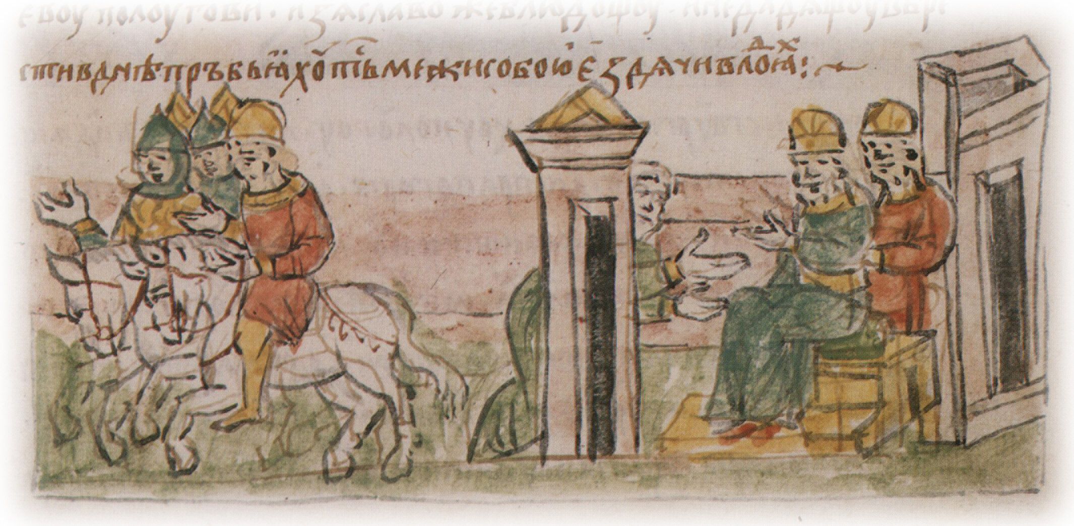 "В лето 6659... Гургий же совокупився на Изяслава со Олговичи, и со Давидовичем с Володимиром, и с половци. И приидоша к Киеву...".