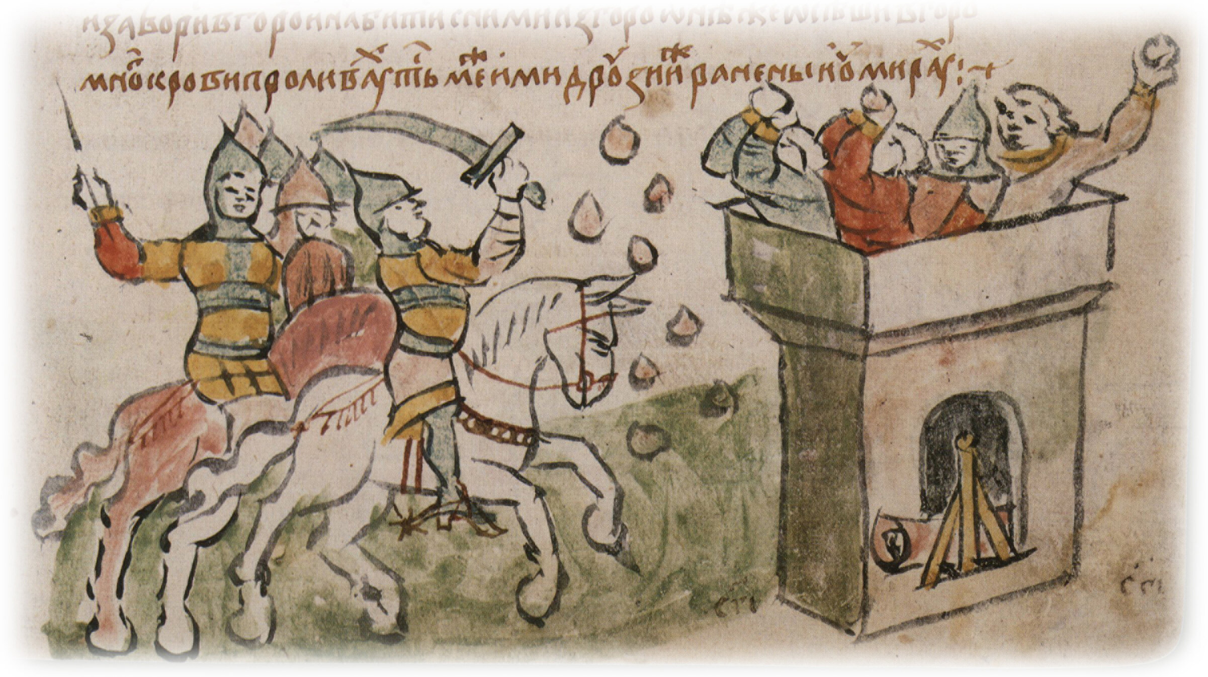 "В лето 6664. ...Идущим им к городу со множеством вой, Мстислав же, видев множество вой, не возмог противитися им, и затворися в городе, и нача битися с ними из города".