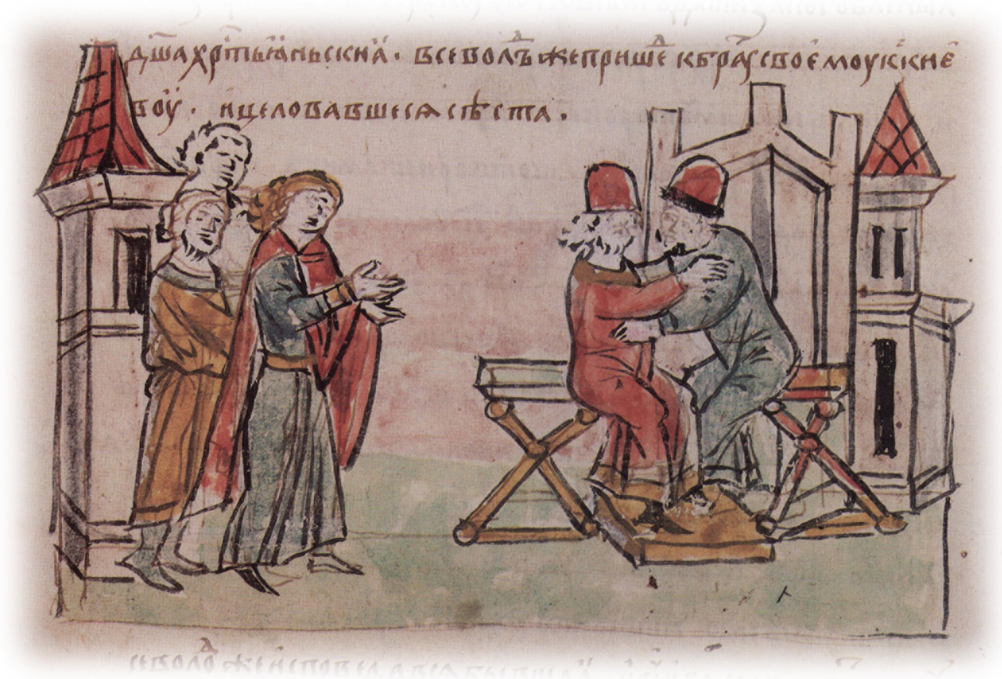 "Всеволод же пришед к брату своему к Киеву, и целовавшеся сеста".