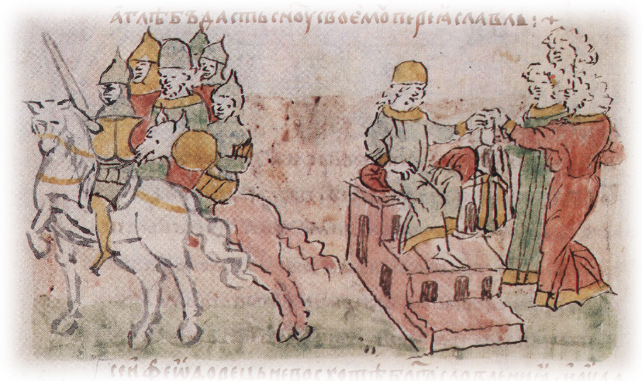 "В лето 6677. Мстислав Андреевич посади в Киеве сына (!) своего Глеба, а сам иде к Володимирю. А Глеб дасть сыну своему Переяславль".