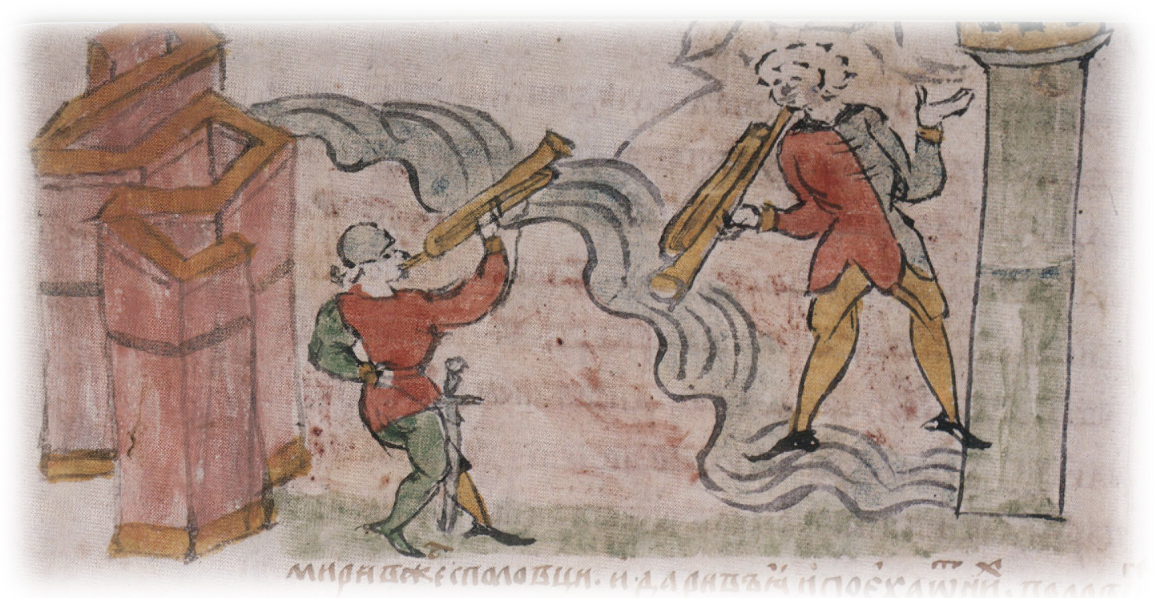Аллегорическое изображение мирных переговоров Глеба Юрьевича Киевского с половецкими князьями, стоящими на Корсуни (?).